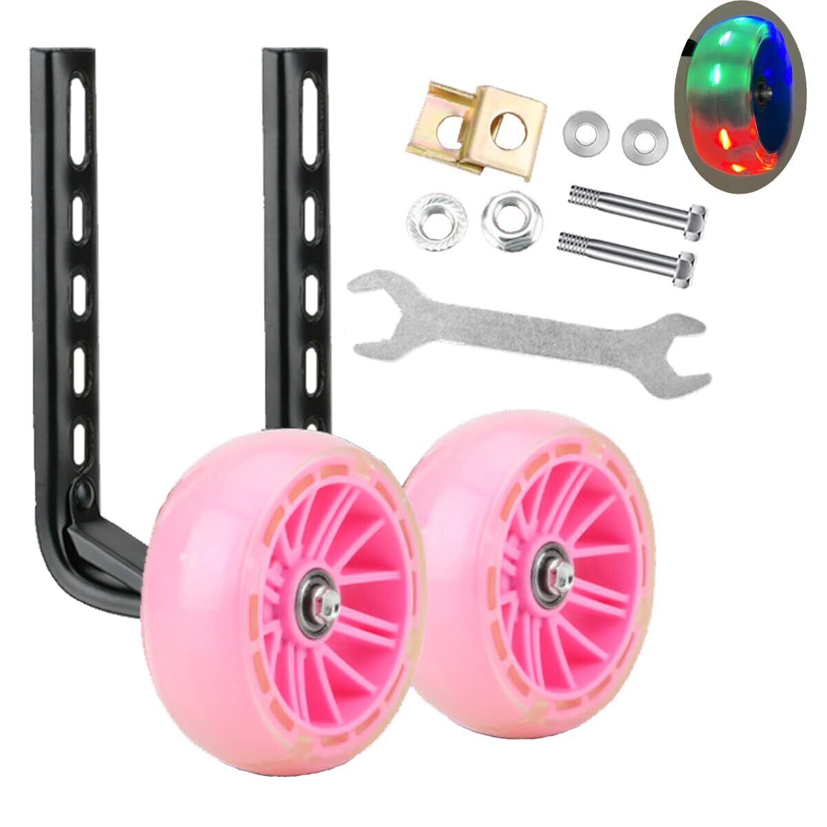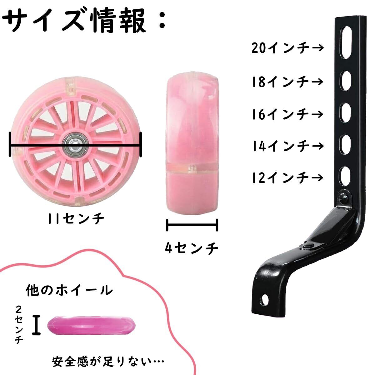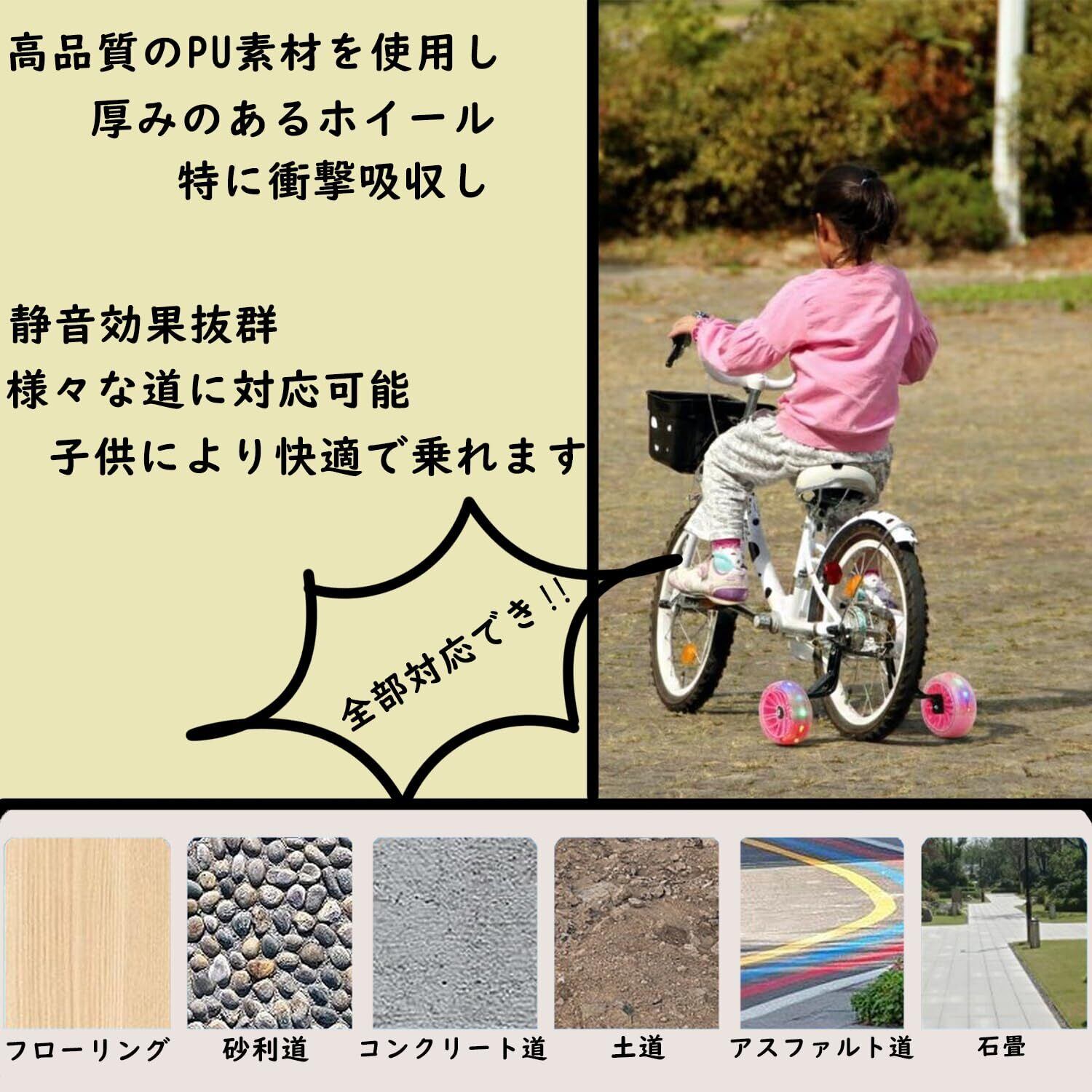 自転車 補助輪 子供用 - 12/14/16/18/20インチ用 ハマーホイール 極太 工具付き 取付簡単 調整可能 光る 安全安定 静か ピンク