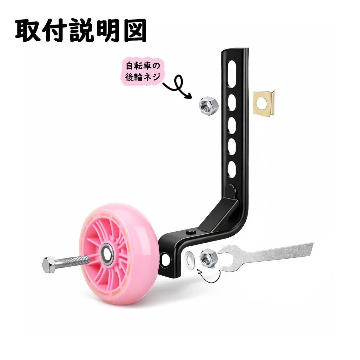 【高品質の補助輪ブラケット】自転車補助輪のブラケットは耐荷重が強く、80kg以上の重量に耐えることができ、崩れる心配がいない、ブラケットの表面は金属烤漆処理が施され、錆びにくいです。
