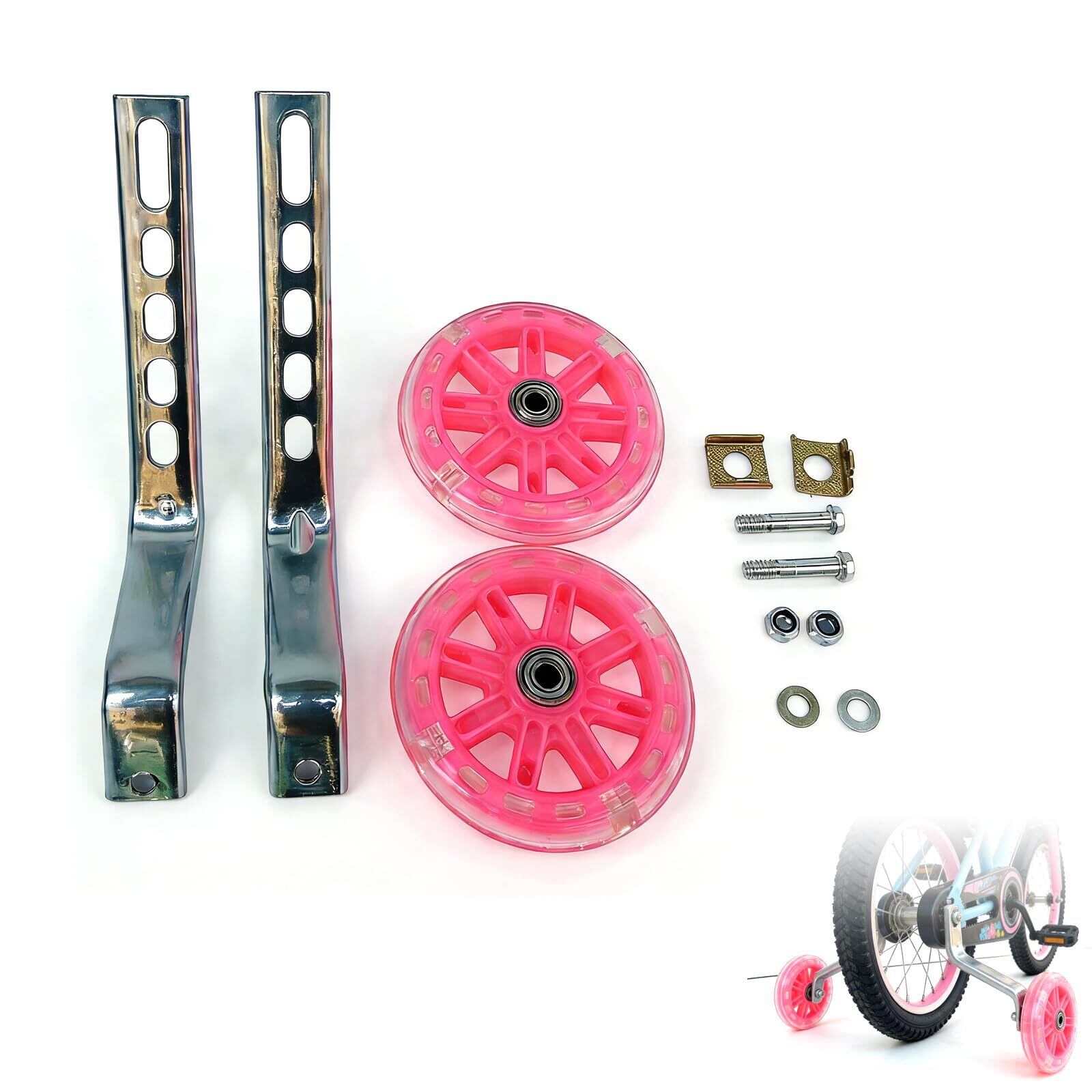 成長サポート 調節可能な安全トレーニングホイール 12〜20インチ子供自転車用 (ピンク)