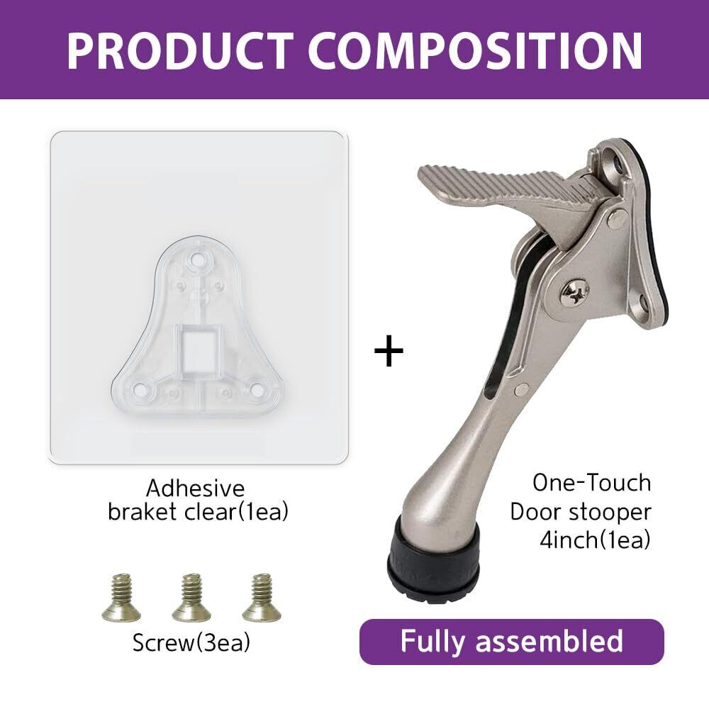 HA SHI ドリル要らずの貼り付け型ドアストッパー, ワンタッチドアストッパー4インチ, ワンタッチキックダウン作動… (サチンニッケル)