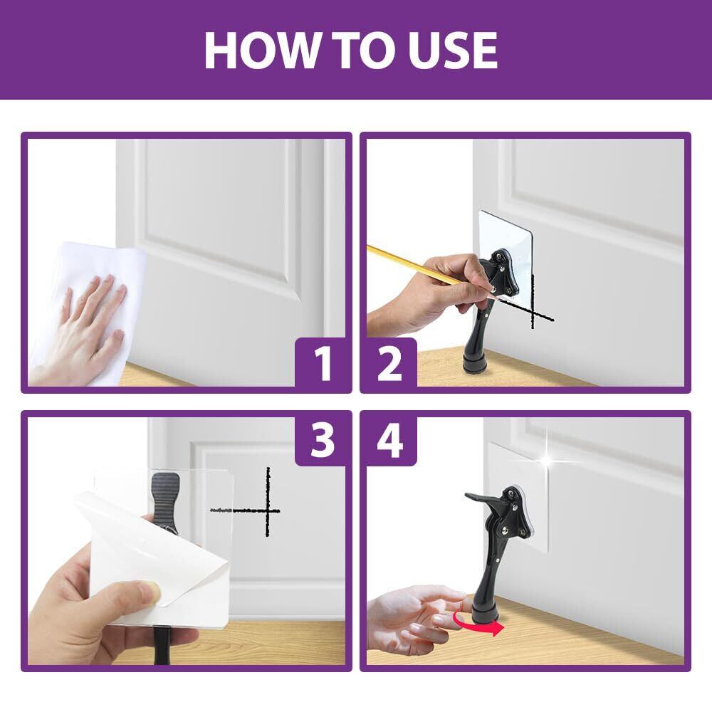 設置簡単 強力な接着力️️: 当店の粘着式ドアストッパーは、穴あけ不要で設置でき、木材、鉄、ガラスなどあらゆるタイプのドアにしっかりと固定することができます。