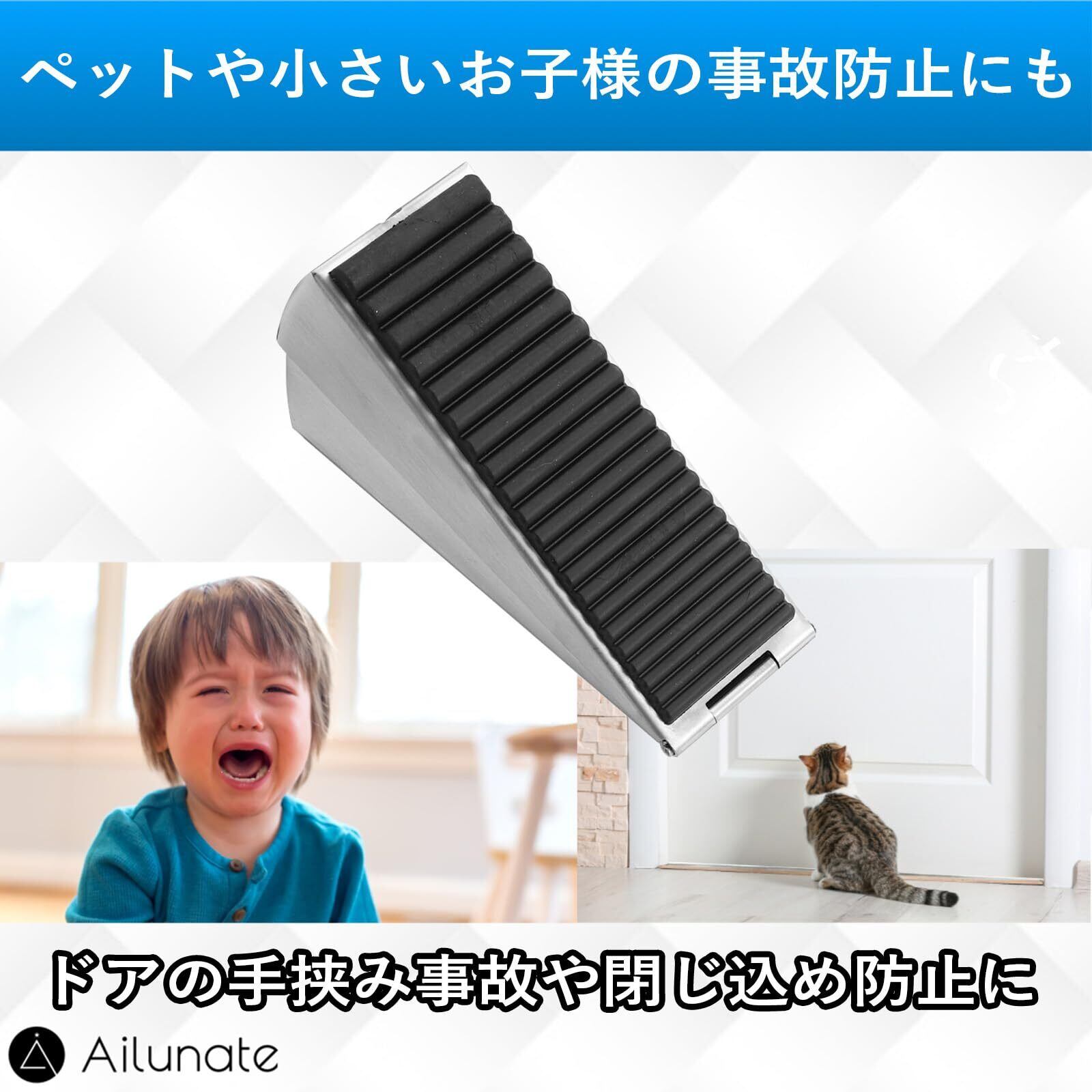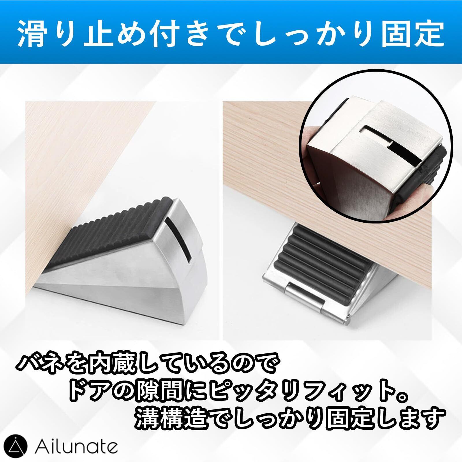 Ailunate ドアストッパー 玄関 室内 引き戸 強力 滑り止め 高さ調節可能 ゴム製 (シルバー)