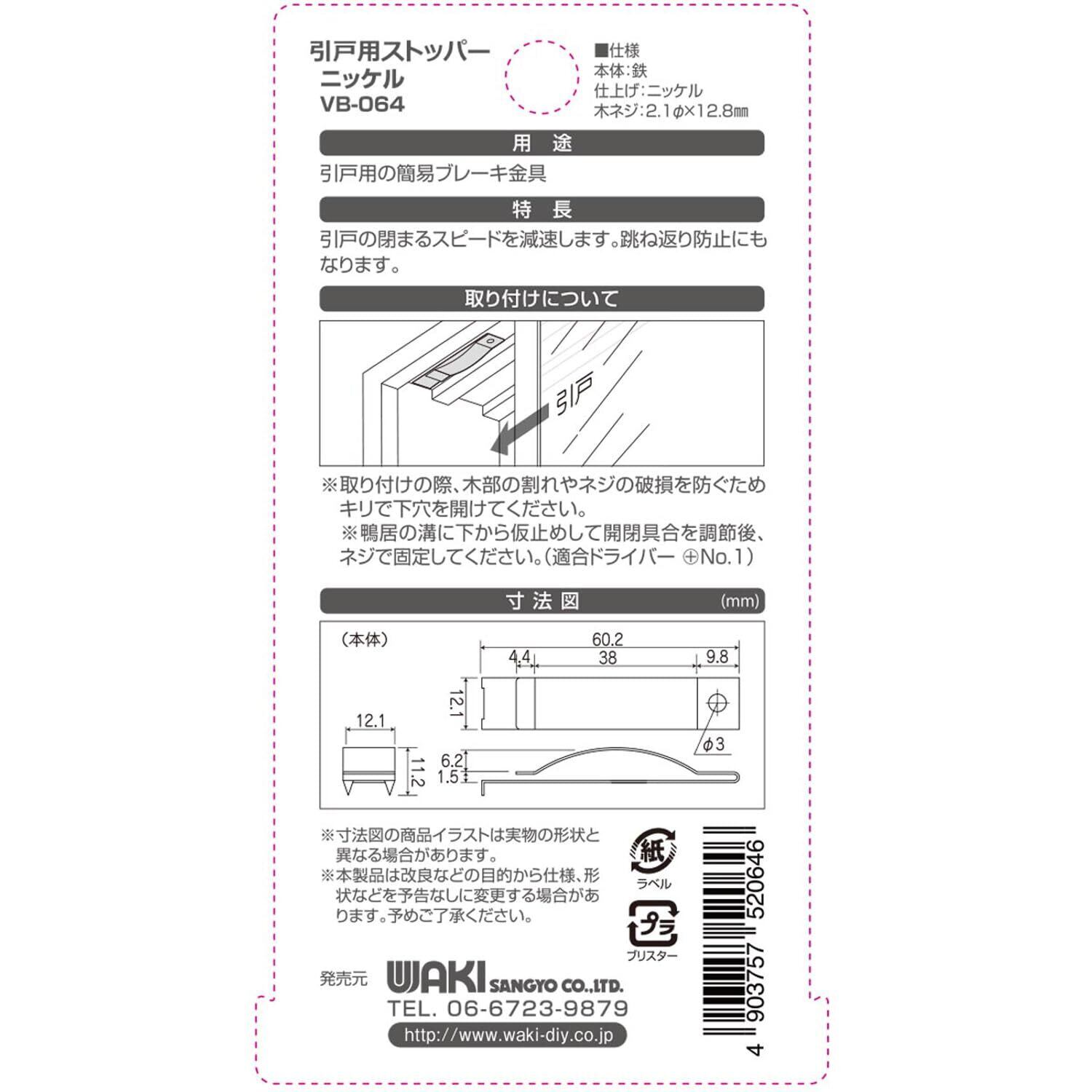 和気産業(Waki Sangyo) 引戸用ストッパー ニッケル 跳ね返り防止 シルバー 60.2mm VB-064