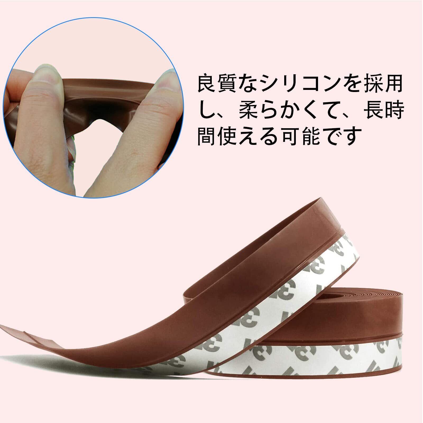 使い勝手:本隙間テープは両面テープ式、信頼できる3Mのテープを採用、粘着性が高い、ドアや窓に貼るだけ良いです、女性の方も簡単に利用てきます。茶色はどこに使っても違和感なし、オフィス、お部屋、浴室、お宅などにも適応です。