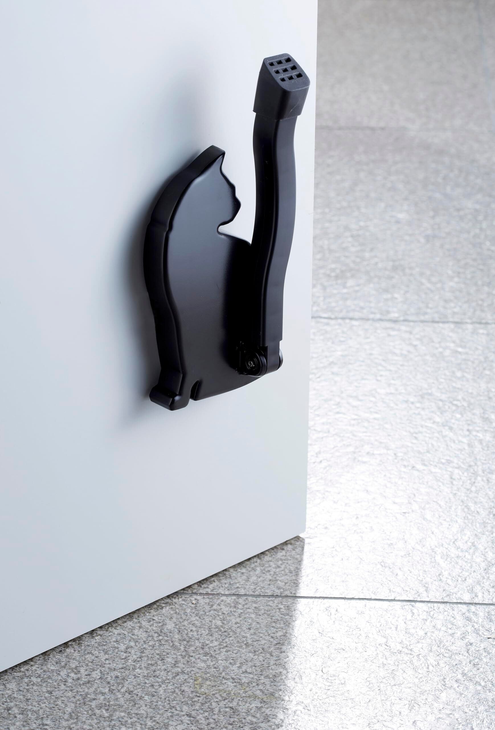 AKS-05 ドアストッパー ねこ ネコ 猫 マグネット式 折り畳み 玄関 簡単取付 室内 ゴム (ブラック)