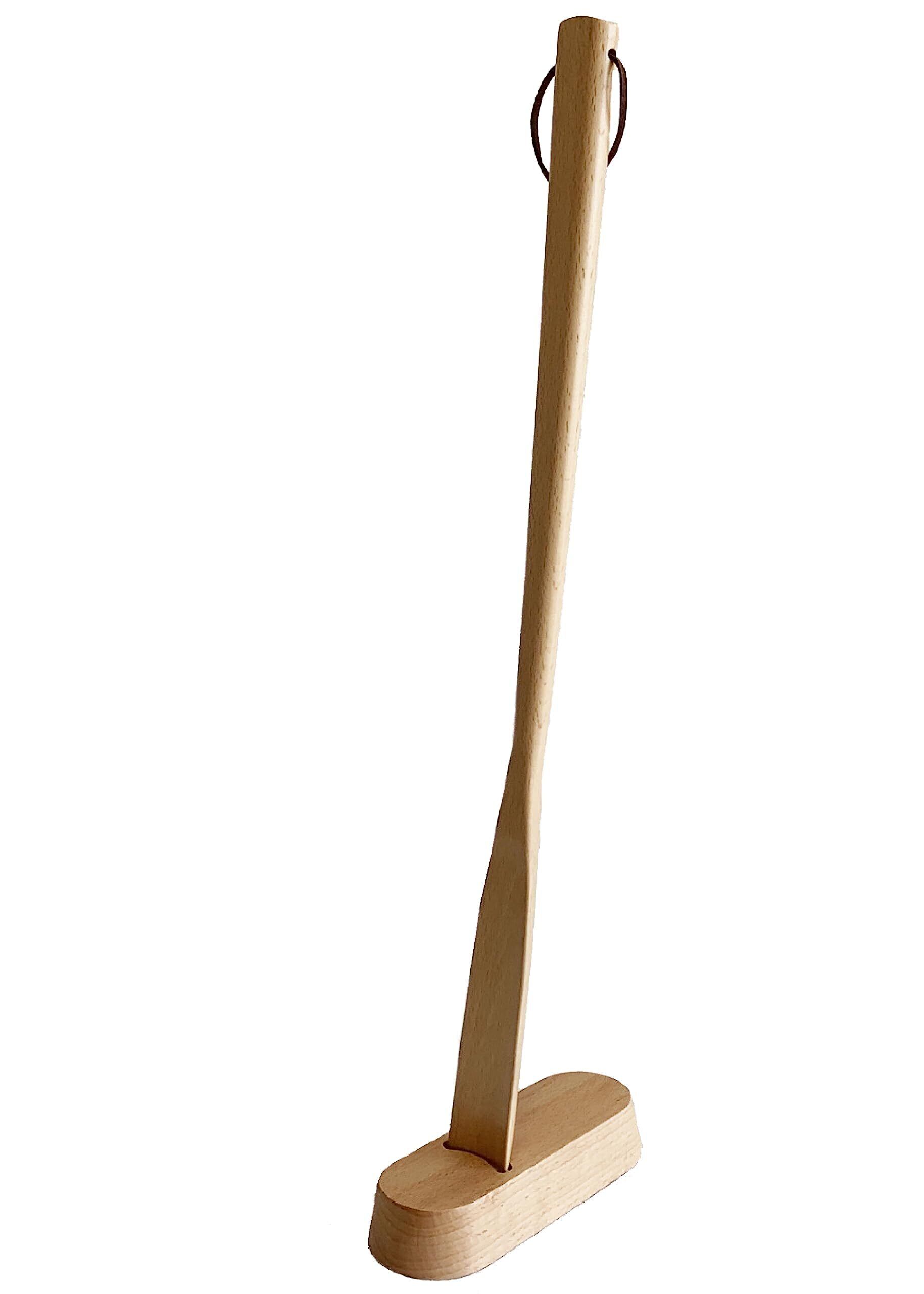 丁寧な加工ですべすべ滑らか、木製スタンド付き靴べら