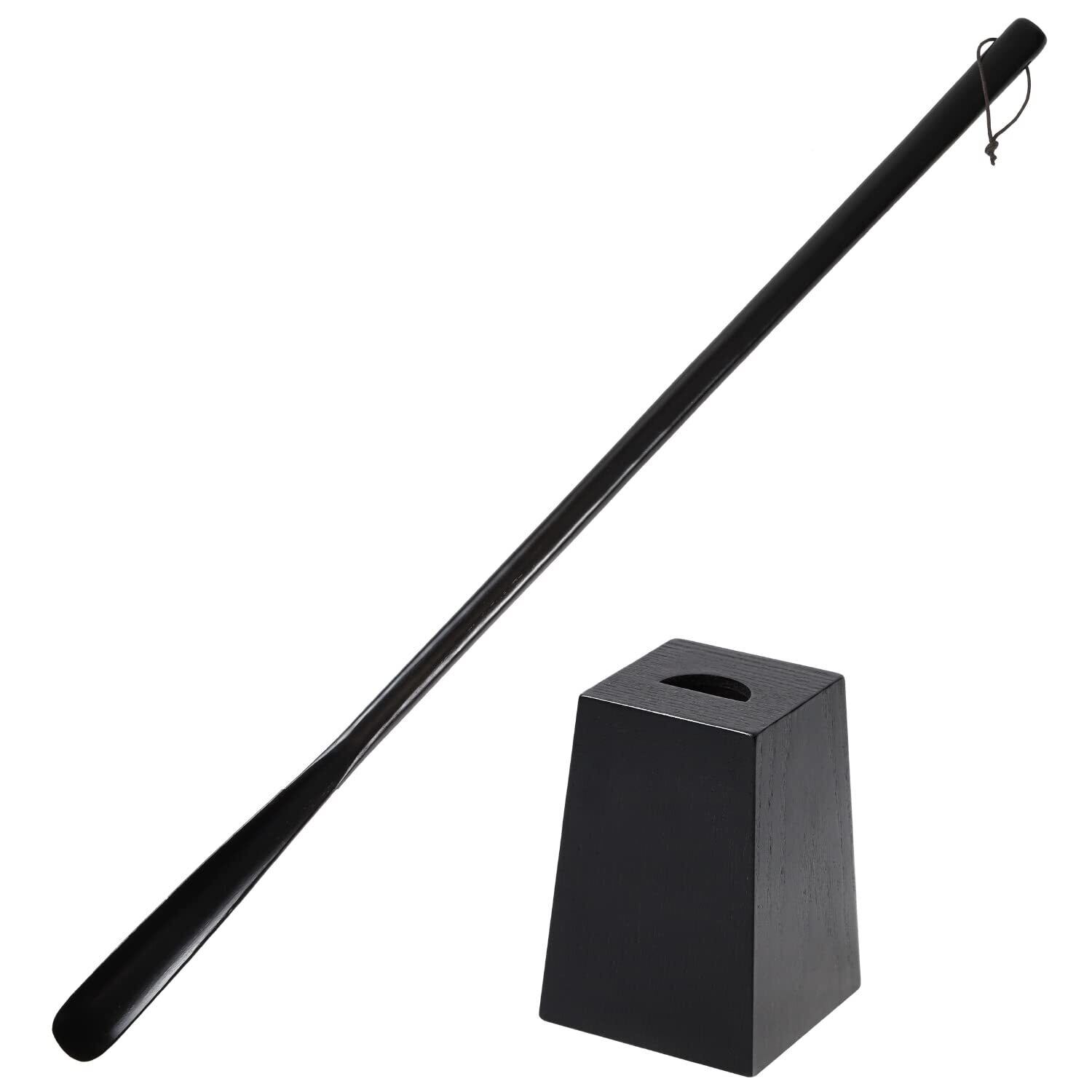 靴べら ベラ ロング スタンド 台付き 木製 長い 75cm おしゃれ クロス付属 ブラック 黒