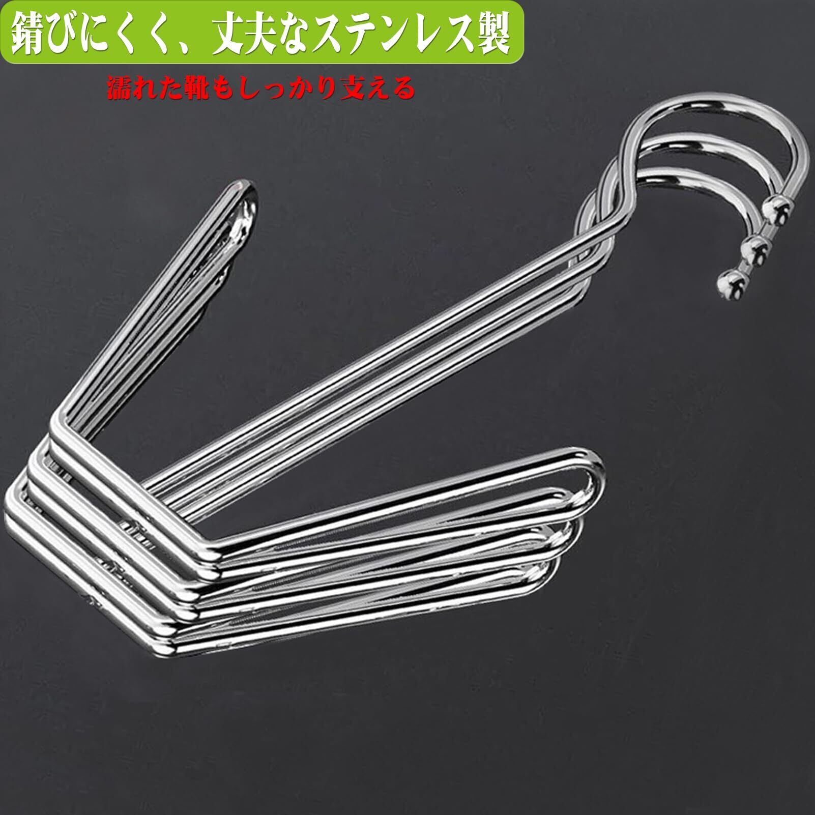 丈夫で錆びにくいステンレス製: 濡れた靴を掛けても曲がりにくく、しっかり支えます。毎日の使用にも安心な耐久性。
