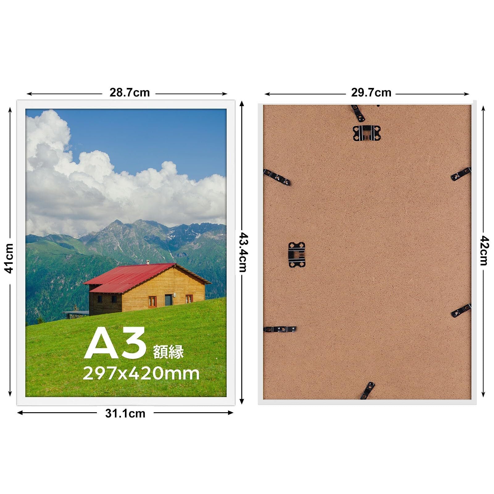 A3サイズ対応: 額縁の外寸:31.1x43.4cm、内寸:29.9x42.2cmで、a3サイズの写真、賞状やポスターなどにぴったりです。