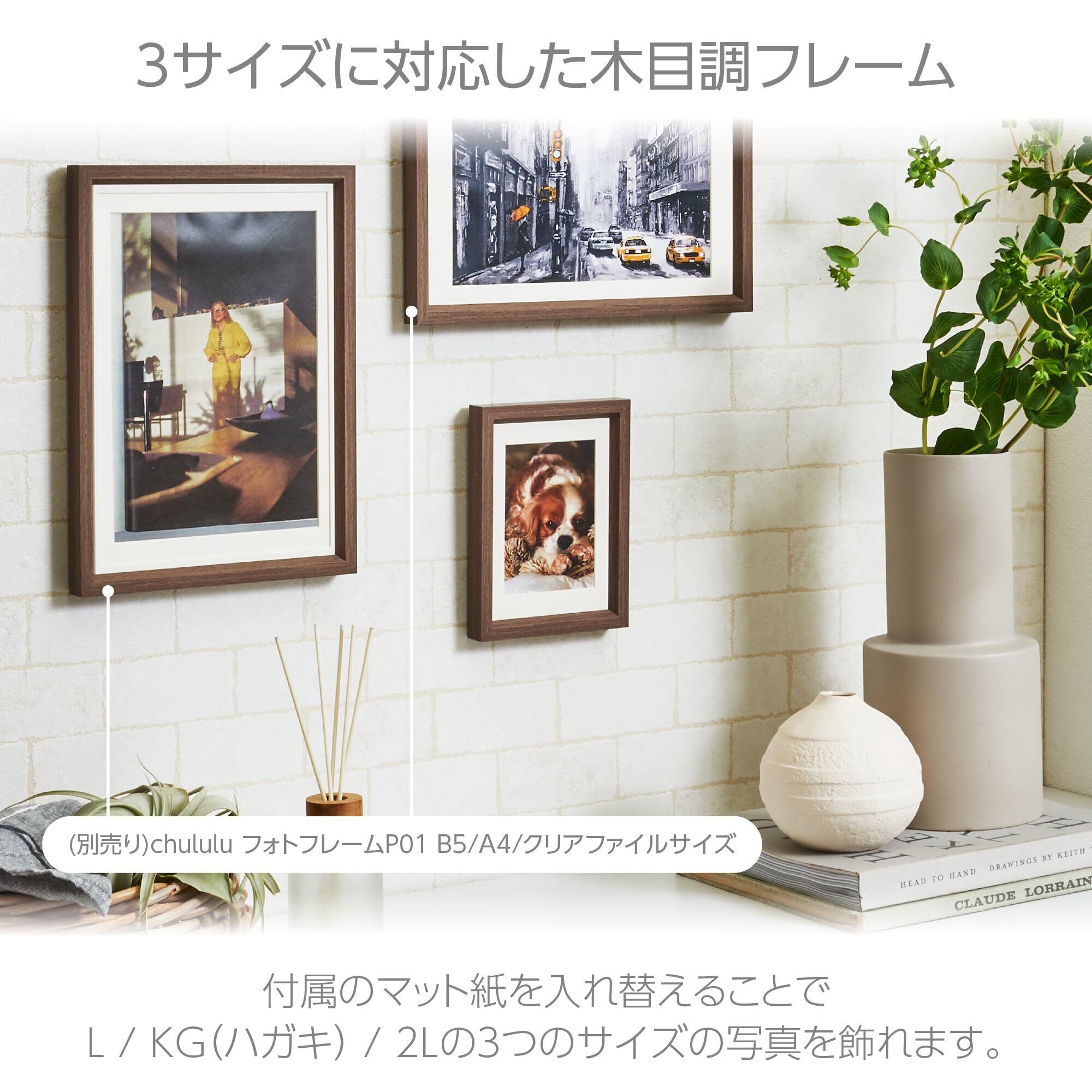 ハクバ HAKUBA 額縁 Chululu(チュルル) フォトフレーム P01 L/KG/2Lサイズ兼用 ブラウン FCHL-P01BR