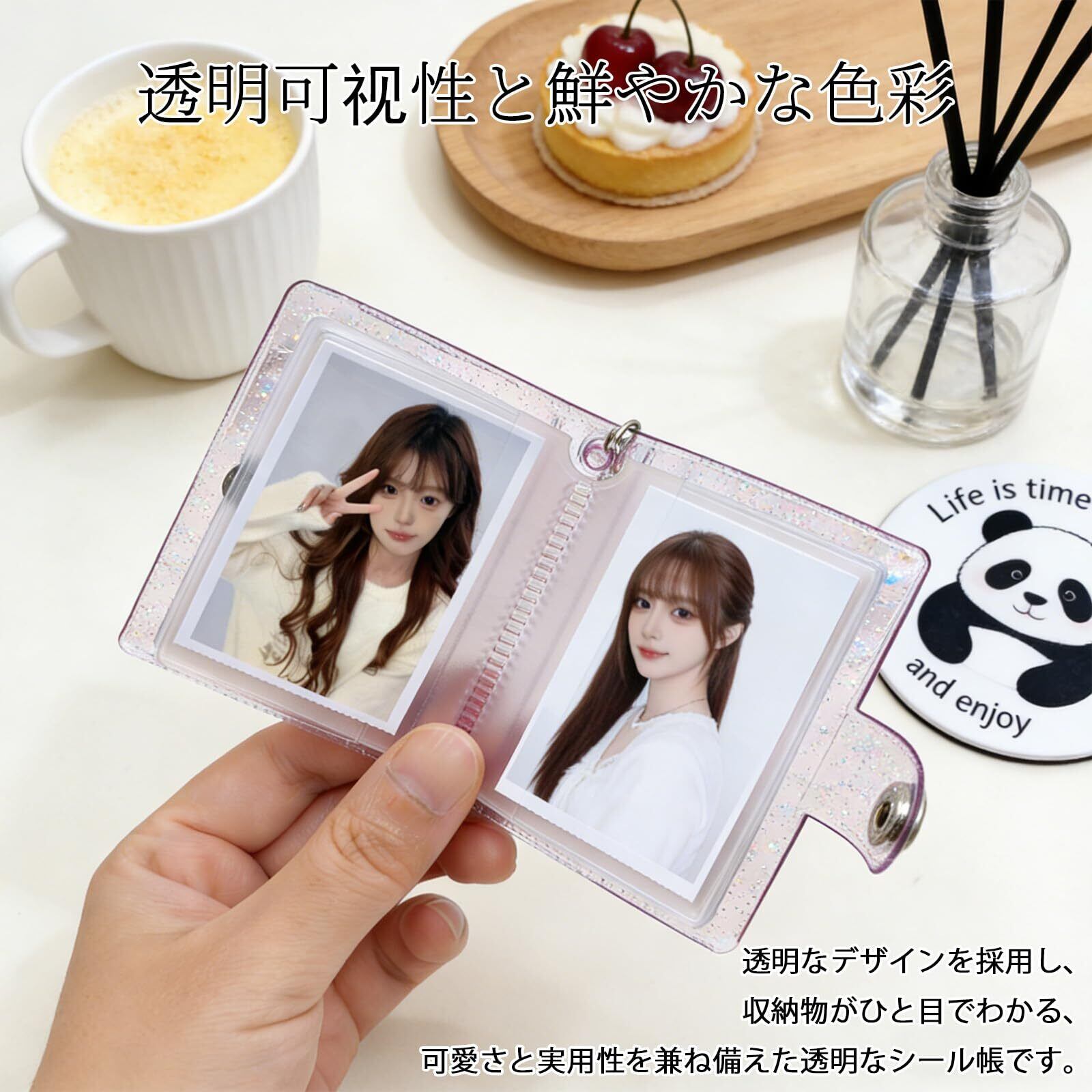 多機能でアイデア次第で無限大:キーホルダー・フォトアルバムとしてだけでなく、付属のミニシール帳でデコレーションしたり、透明ポケットにシールやメモを入れたり、カバン掛けとしても活用可能です。