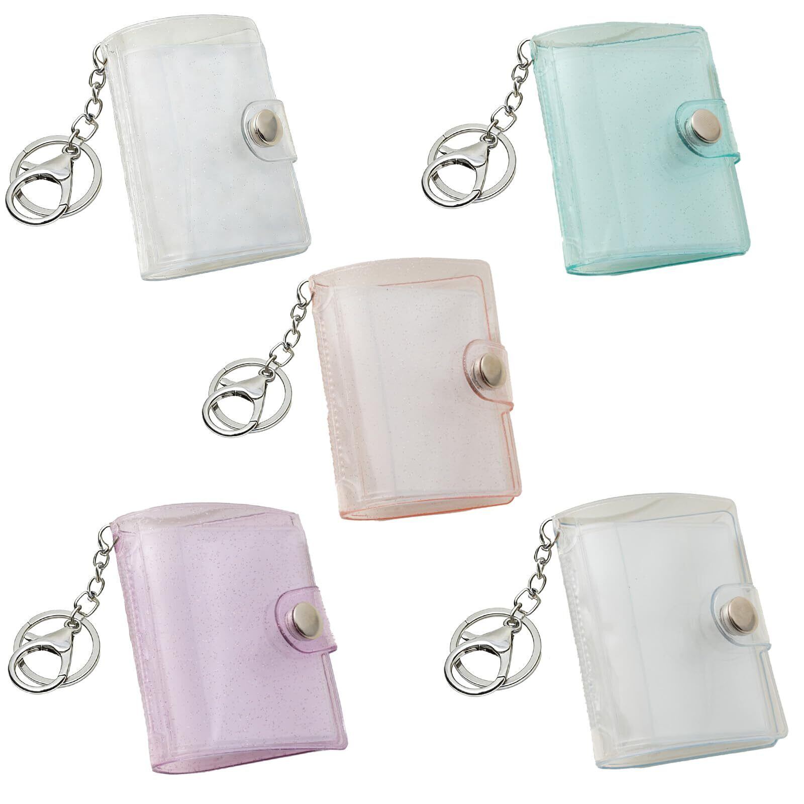 5個パック ミニアルバムキーホルダー フォトアルバム ロブスタークラスプをアップグレードしてください ミニシール帳 透明クリアポケット 2インチ 28枚収納 写真入りキーホルダー アルバム 手作りカバン掛け 誕生日 記念日 思い出記録 ギフト用 (5PCS透明)