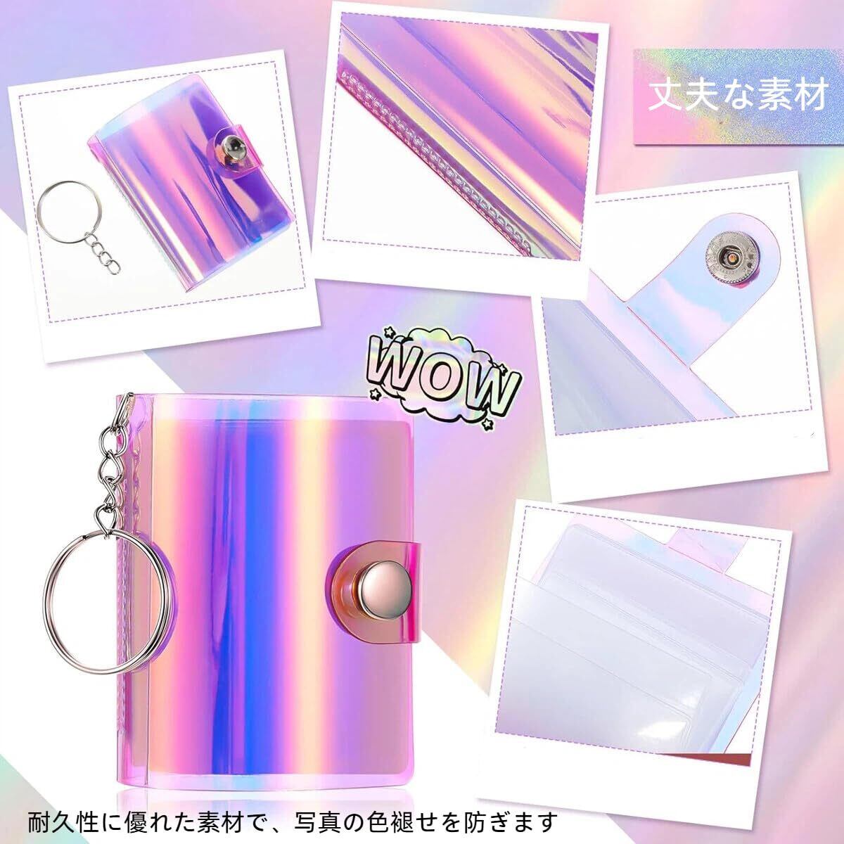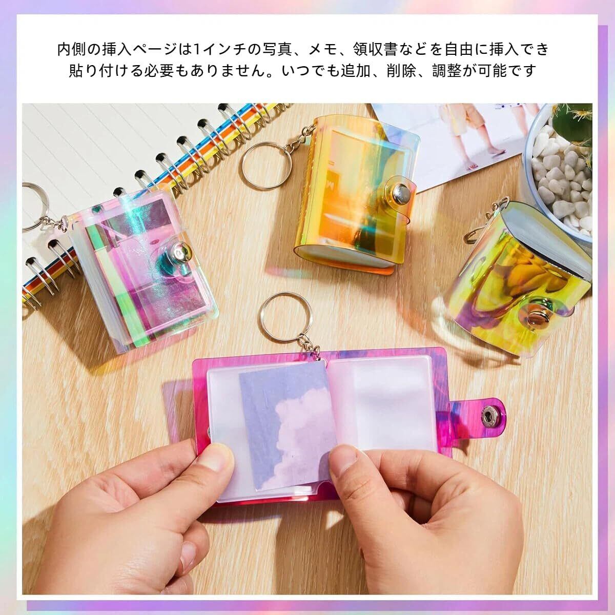【キーホルダーデザイン】ミニアルバムキーホルダーは柔軟に使用されており、キーホルダーに接続でき、財布、バッグ、衣類と一緒に持ち運ぶことができ、おしゃれで簡単に分類でき、写真やその他の画像を安全に保護することができます。