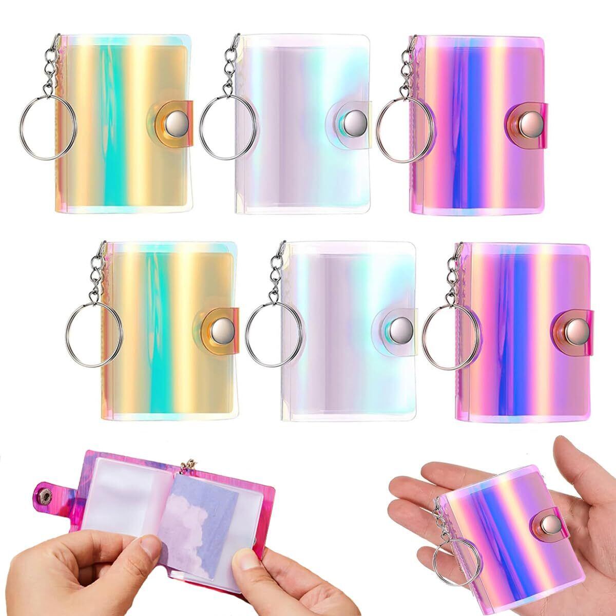 CHYGミニアルバムキーホルダー 透明ミニシール帳 キーホルダー付き女の子フォトアルバム 6個 写真入り 小型ポケット ミニフォトバインダー 持ち運び便利 防水 バインダー 写真収納 内ページ10枚付属 (レーザー柄)