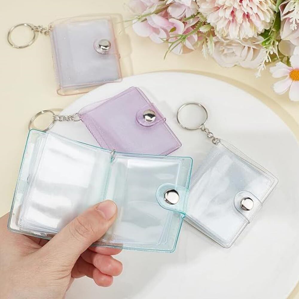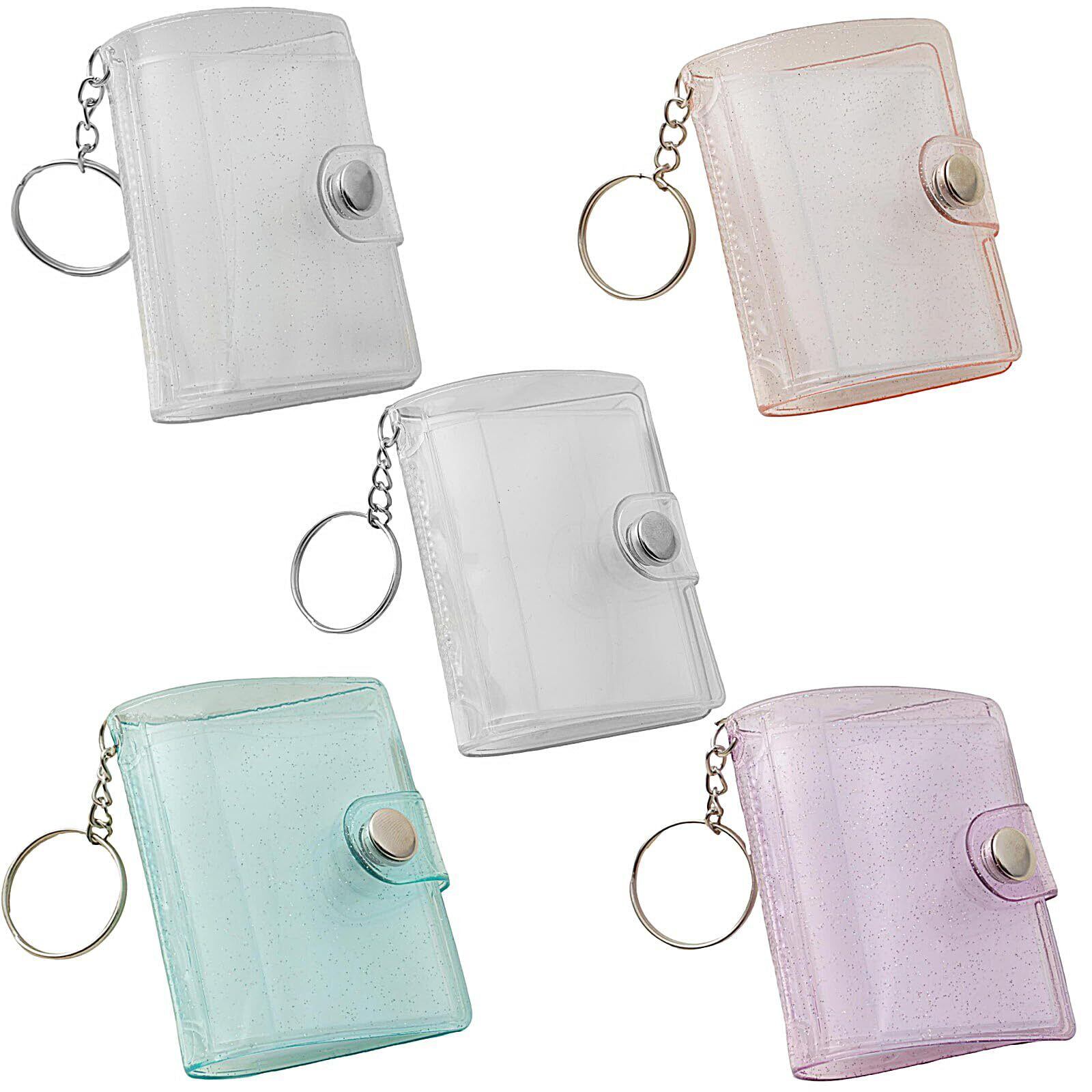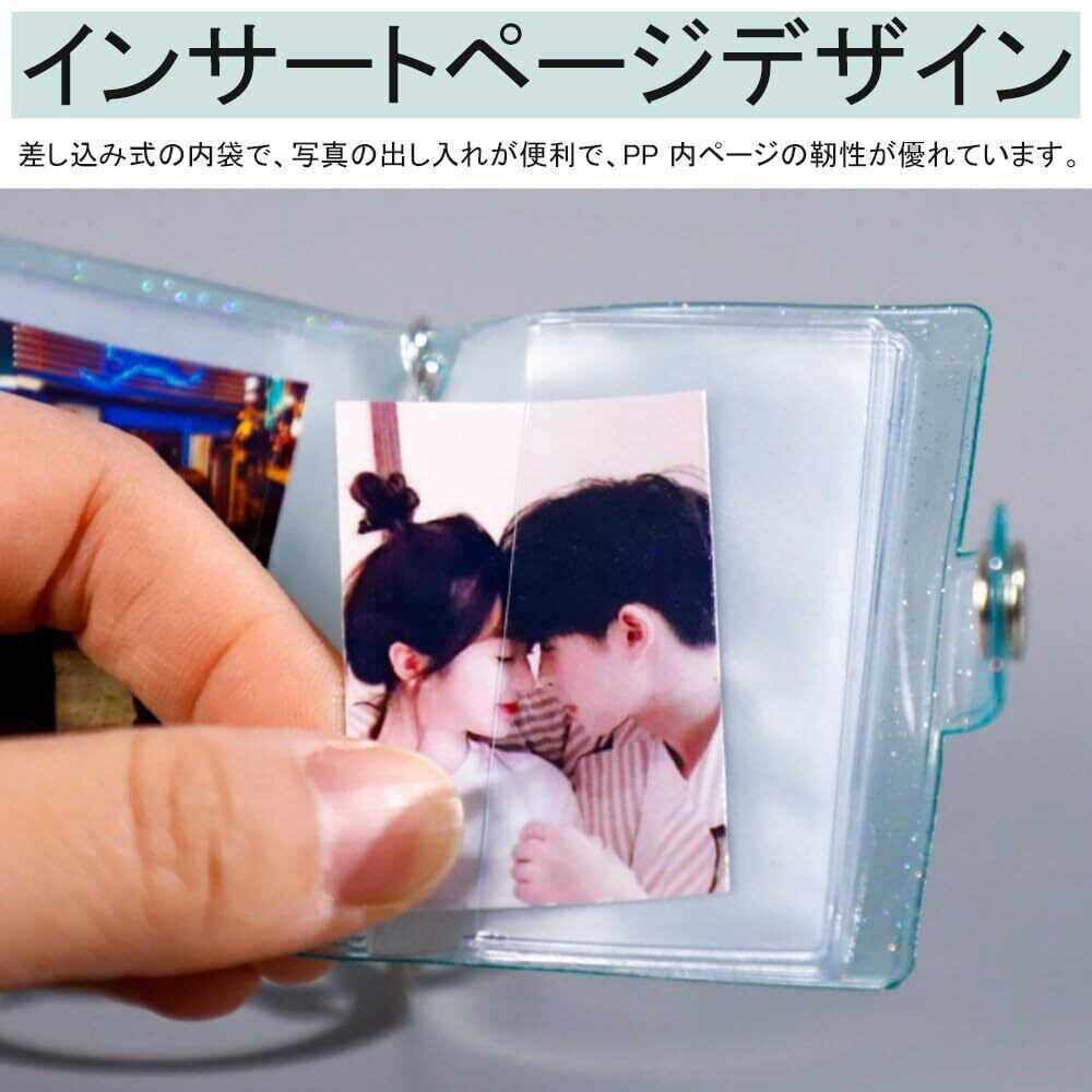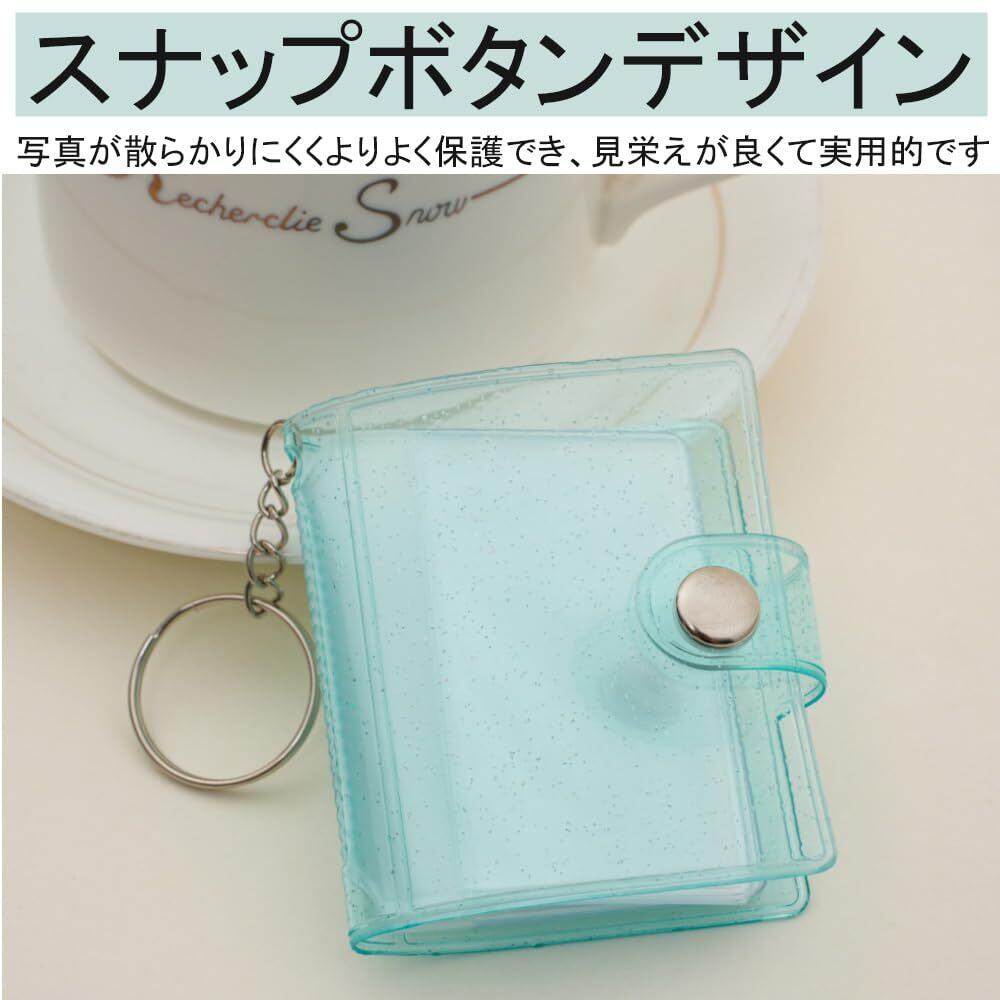フォトアルバムキーチェーン 2インチ 20枚 ミニ インタースティシャルポケット 透明 キーホルダー付 持ち運び便利 PVC 防水 写真ホルダー 推し活グッズ 恋人メモリ 誕生日 記念日 (5色)