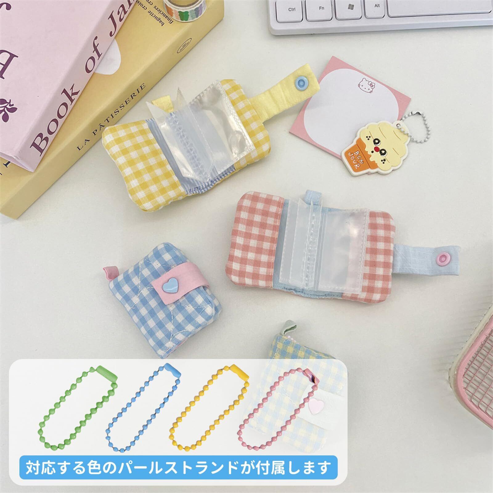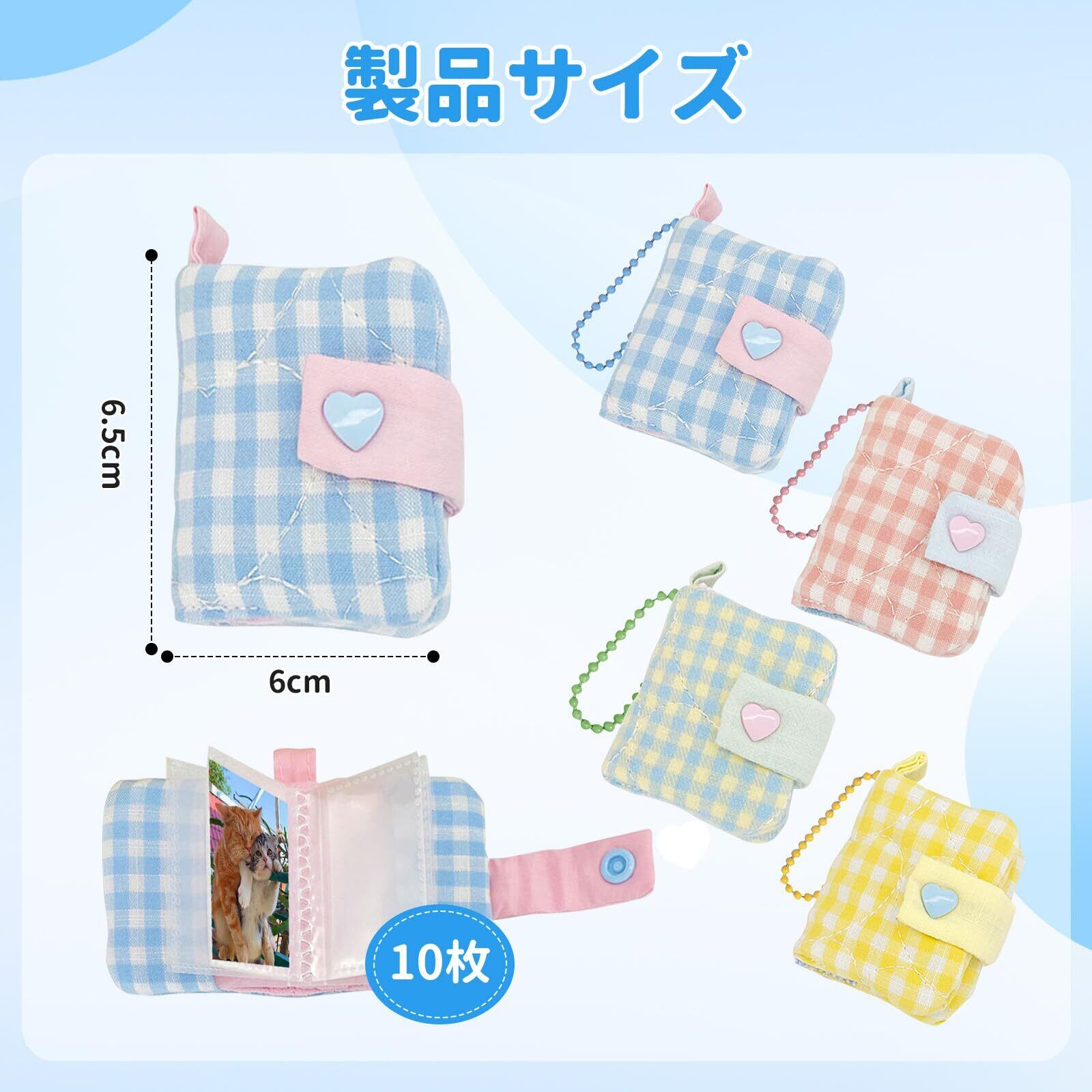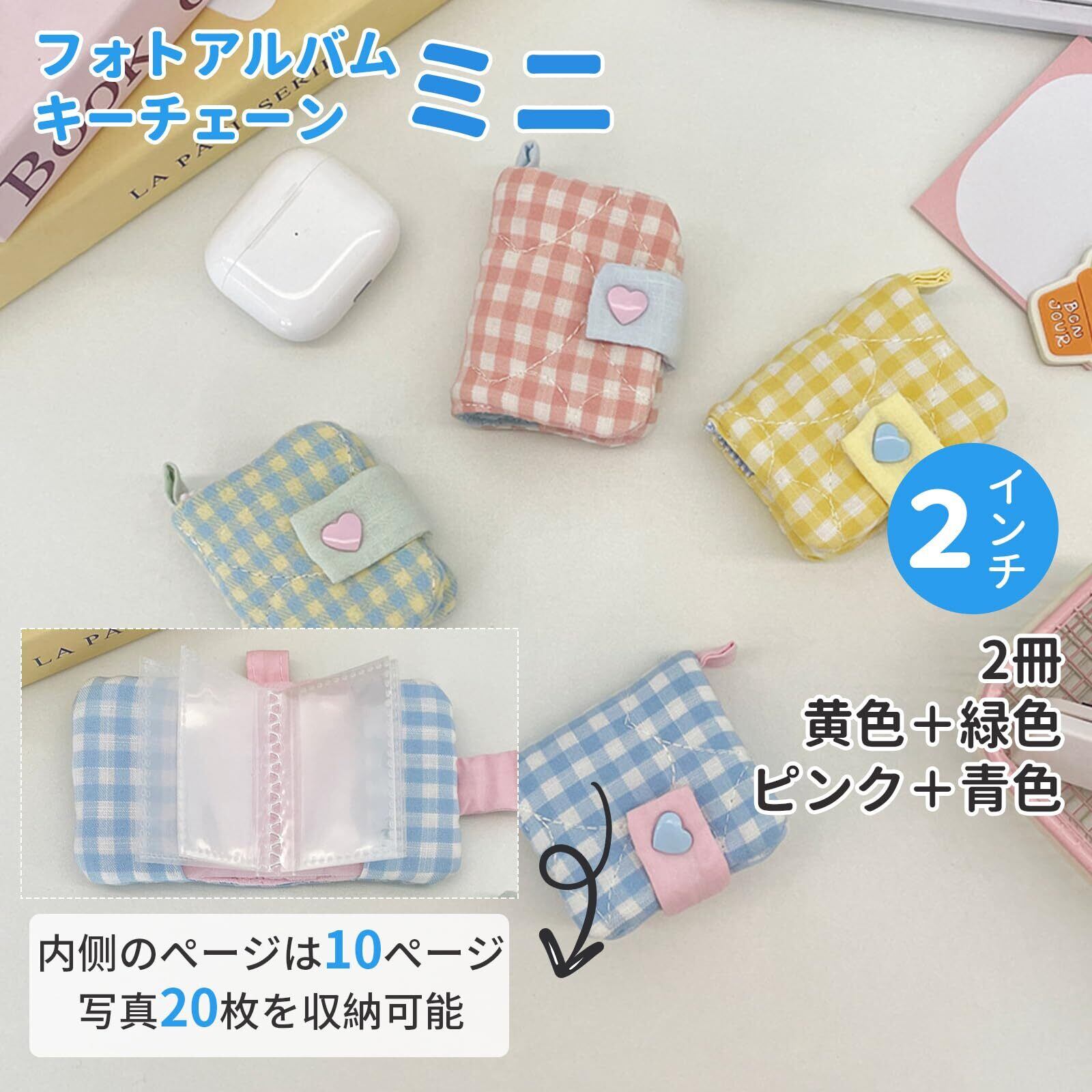 ミニアルバムキーホルダー 2冊 20枚 両面収納 2インチ ミニシール帳 キーホルダー ファブリック 小さく チェック柄スタイル 防水 持ち運び便利 写真ストレージ バッグドライバー 誕生日 記念日