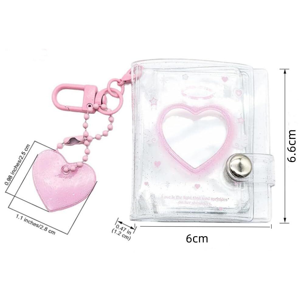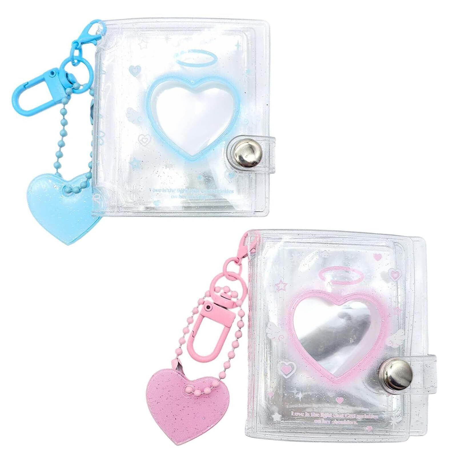 フォトアルバムキーチェーン 2個入り ミニ インタースティシャルポケット 2インチ 透明 持ち運び便利 防水 バインダー 写真収納 内ページ40枚付属 (ピンク+ブルー)