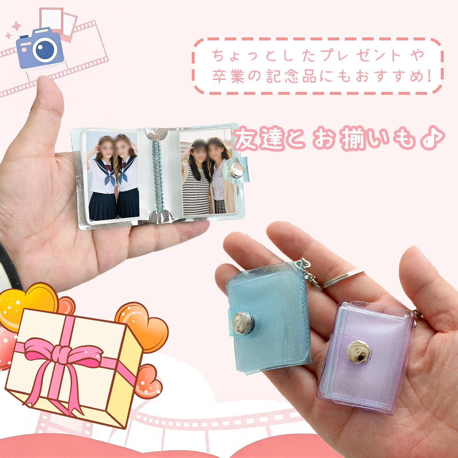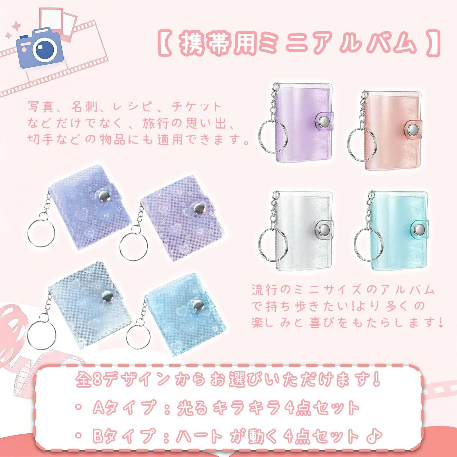 ミニアルバムキーホルダー フォトアルバム 4冊 80枚収納 透明 防水 持ち運び便利 写真入りキーホルダー 推し活グッズ 思い出記録 贈り物 Bタイプ