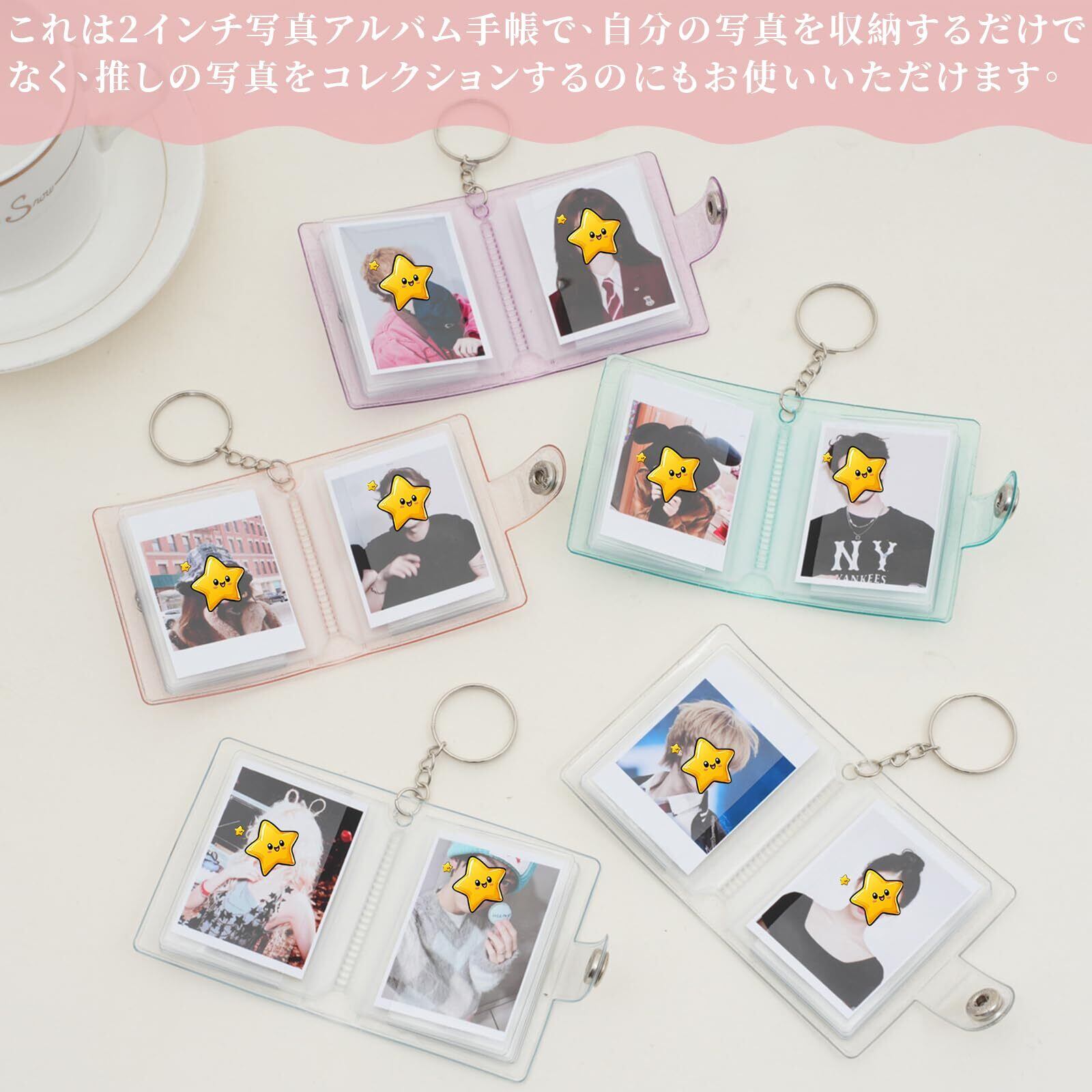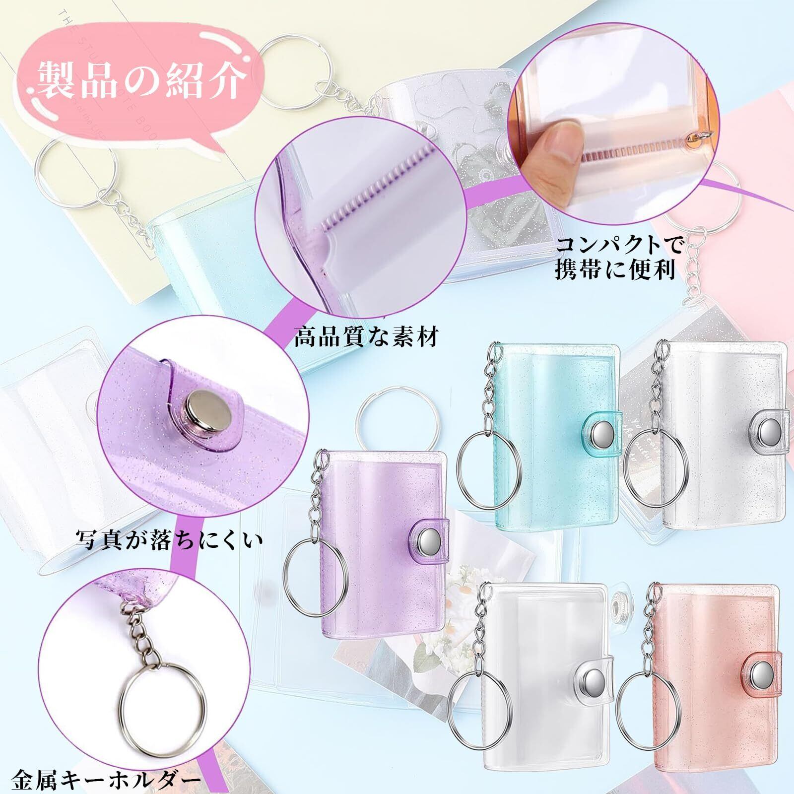 ミニアルバムキーホルダー 透明ポケット20枚収納 2インチ 写真 収納 防水 携帯 ミニ 写真 立て DIY 思い出 アルバム ギフト (5色セット)