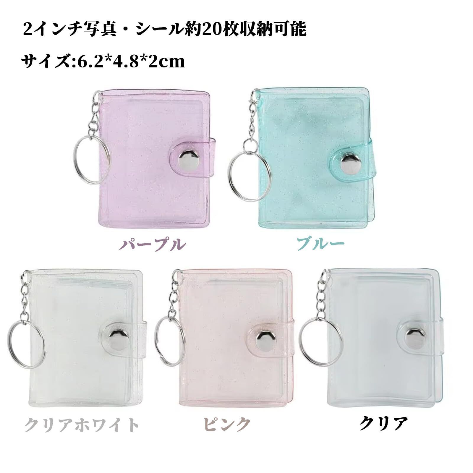 ミニアルバムキーホルダー 5個セット 2インチ 3Dシール帳 フォトアルバム ミニシール帳 透明クリアポケット 推し活 女の子 コラージュノート クリアタイプ 思い出記録 ギフト用