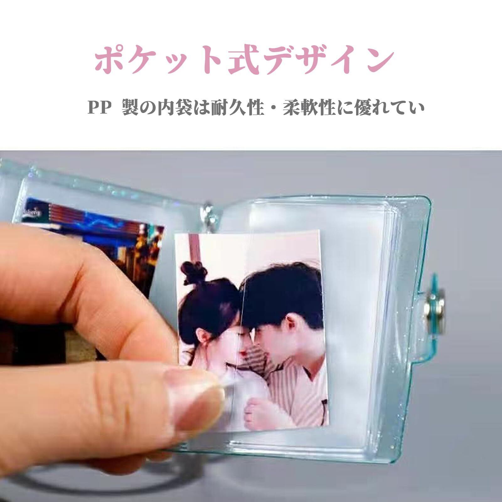 【シール帳&キーホルダー両用】 ミニアルバム+キーホルダー一体型。写真やシールを収納し、バッグや財布に手軽に携帯可能。