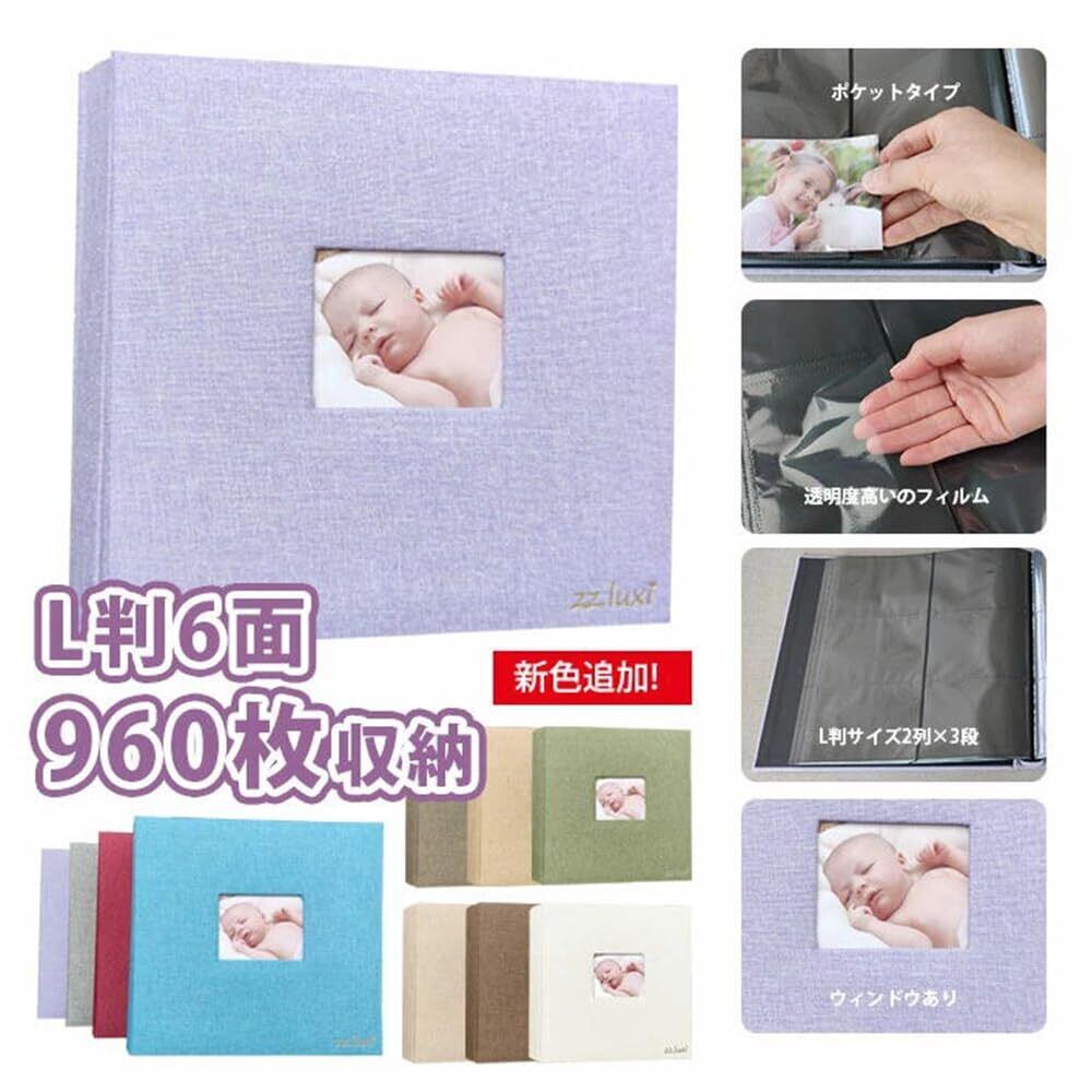 アルバム 大容量 L判 480枚 600枚 960枚 ポケットアルバム ポケット式 フォトアルバム 写真 ポケット収納タイプ 麻素材 おしゃれ ウィンドウあり かわいい 整理 赤ちゃん 子供 記念日 結婚式 文房具 写真整理用品 簡単 収納 可愛い