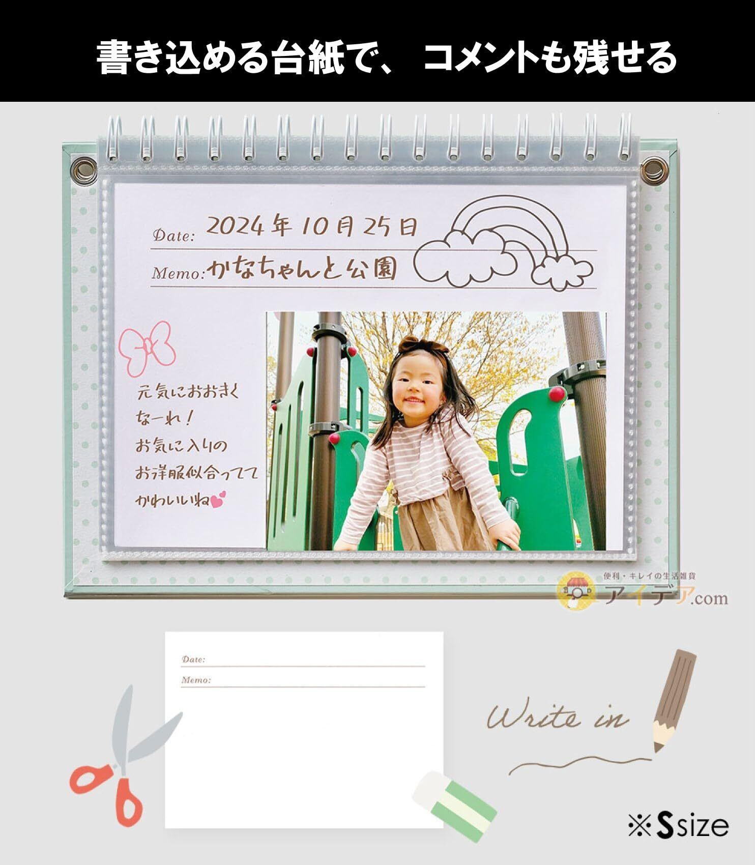 2L判サイズポケット×20枚(12.7×17.8cmまで対応)、メモ台紙×20枚が収納できる