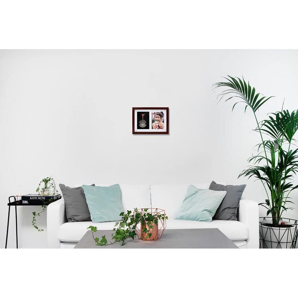 メダルディスプレイシャドーボックスフレーム シングルメダル&写真用 - ランナー、マラソン、サッカー、フットボール、体操、すべてのスポーツ用ケース(ウォールナットブラウン、A4)
