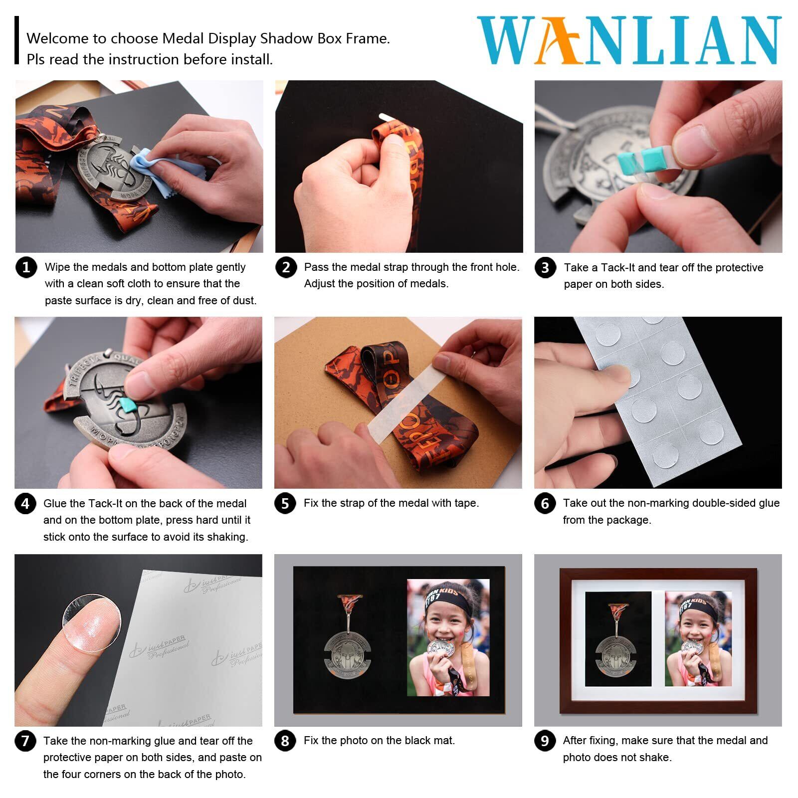 【アクセサリー一式】メダルシャドーボックスフレームはカートンに入っています。 取り付けと使用に便利なように、パッケージには取り付けマニュアル、タックイット、跡が残らないフック、跡のつかない接着剤が含まれています。 (メダルはフレームに含まれません)。