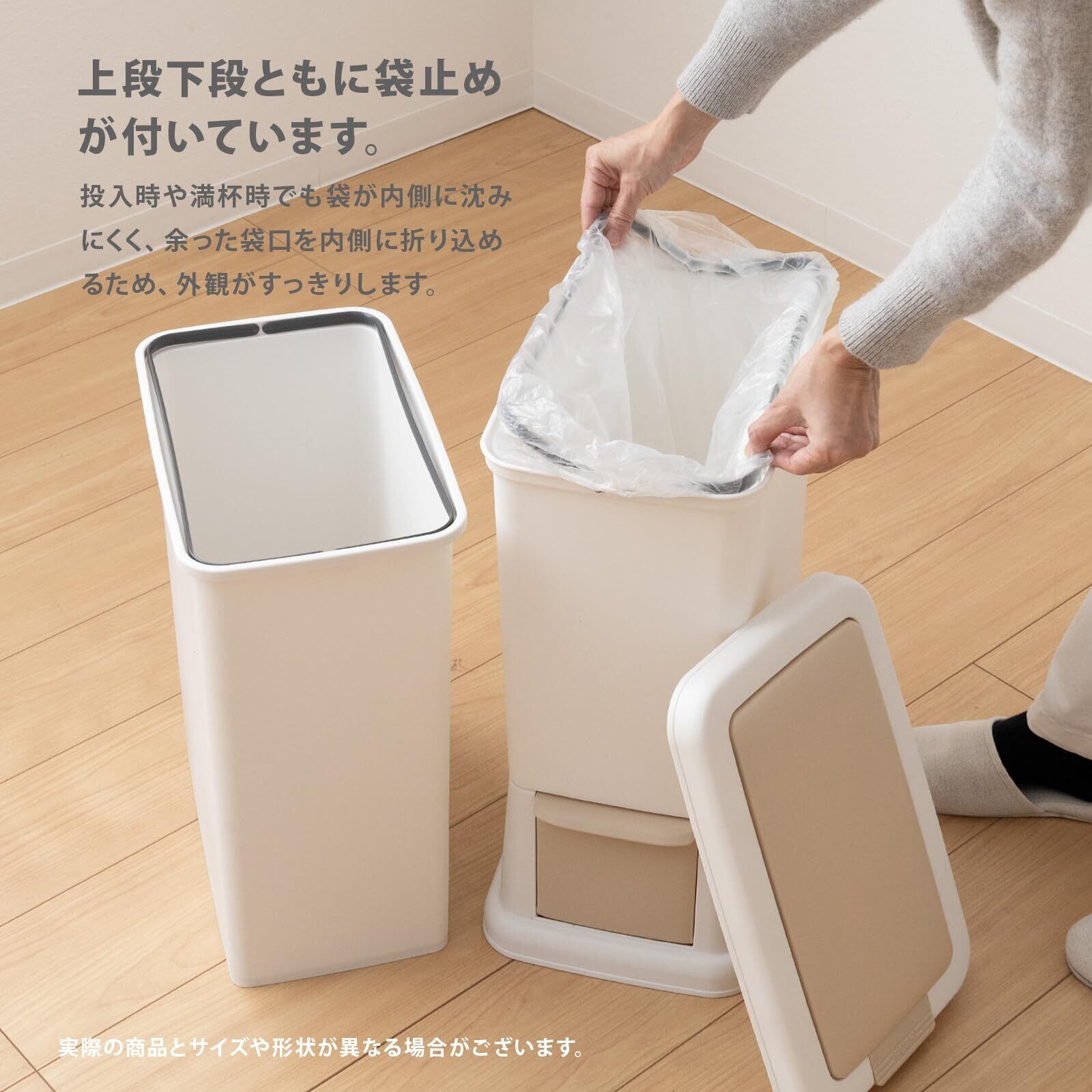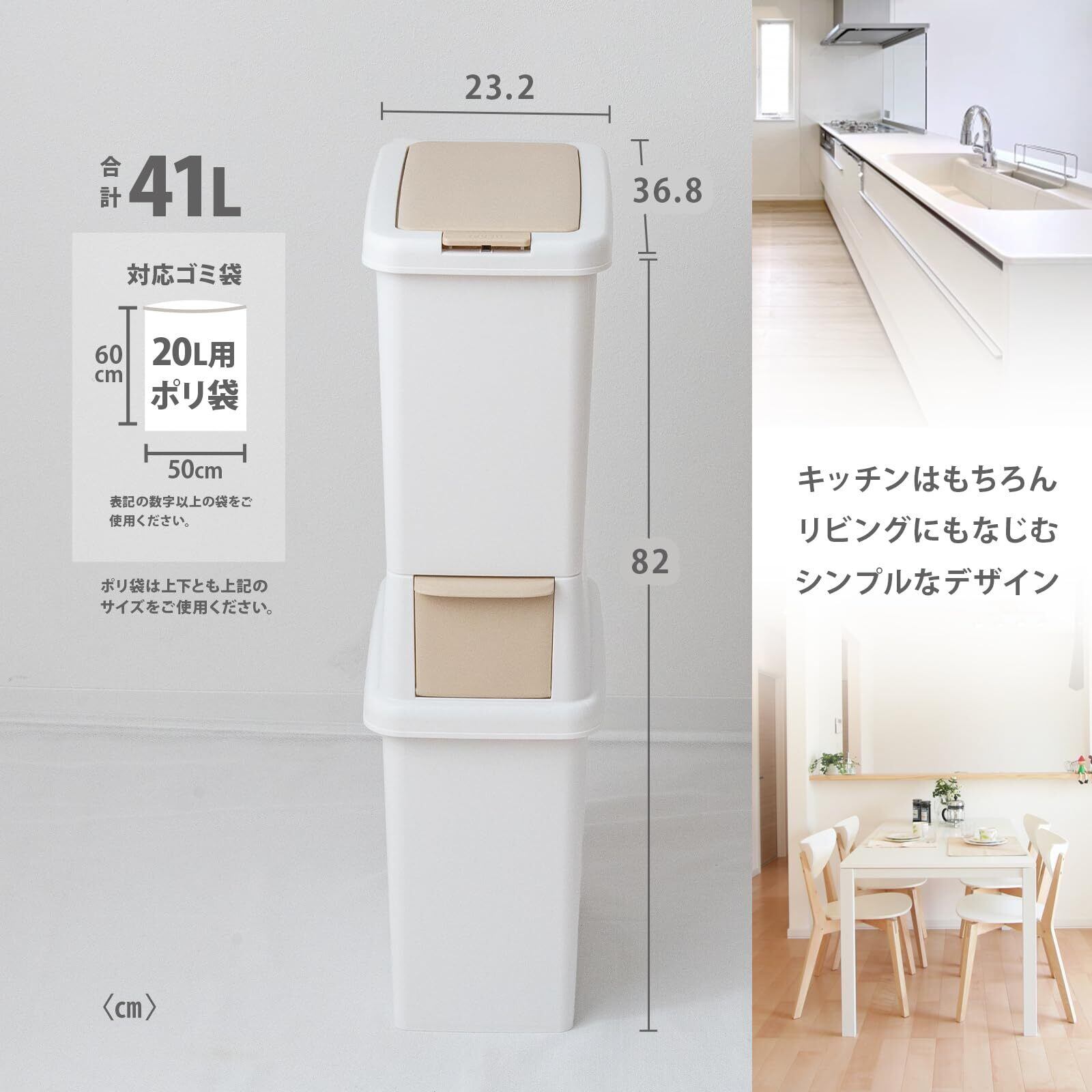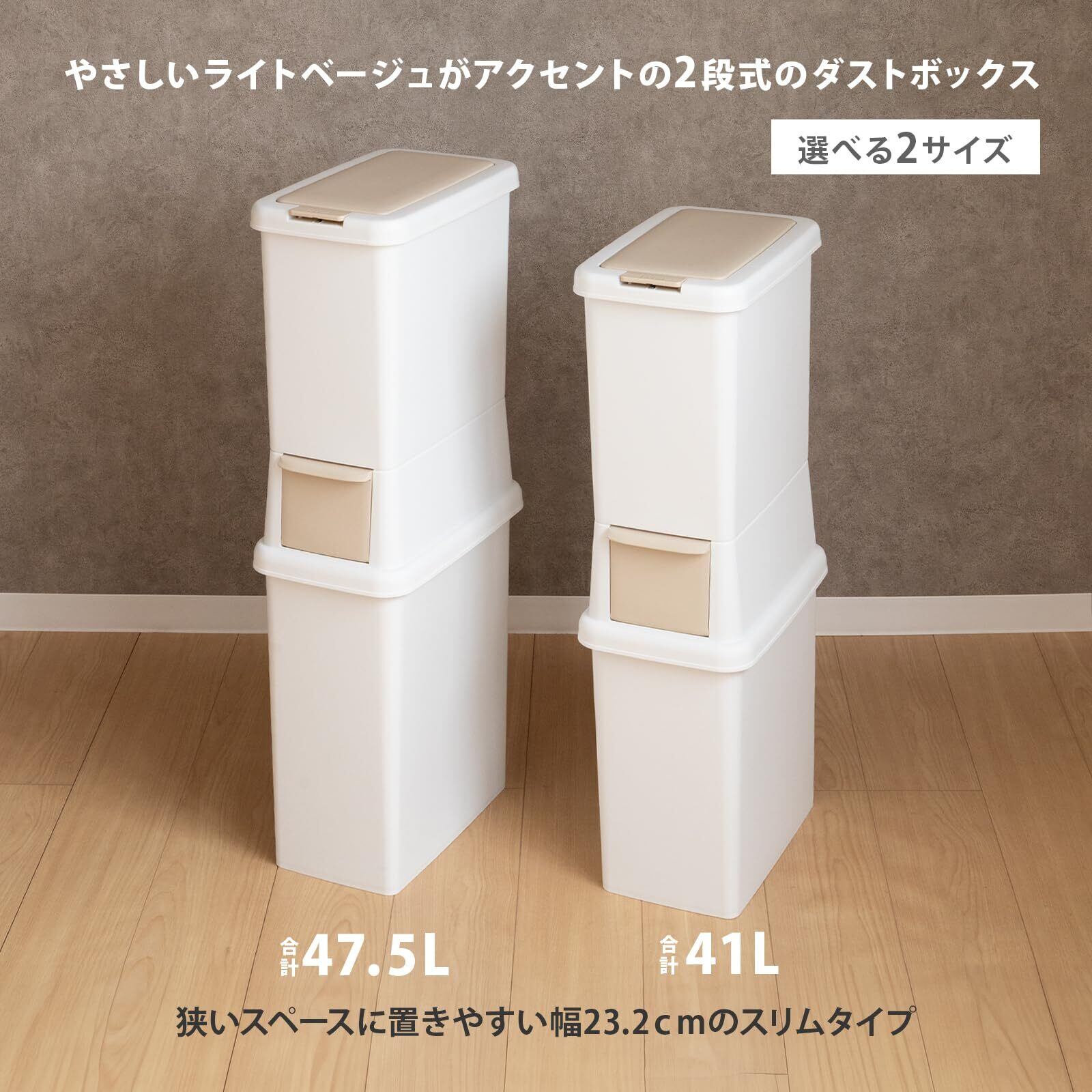 サンコープラスチック ゴミ箱 2段分別スリム 41L ライトベージュ