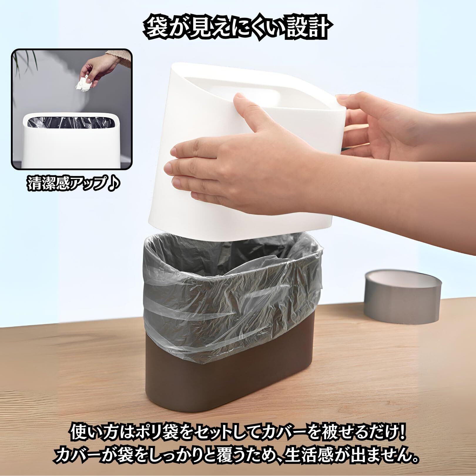 【袋が見えにくい設計】使い方はポリ袋をセットしてカバーを被せるだけ!カバーが袋をしっかりと覆うため、生活感を出さずに清潔な見た目で置くことができます。