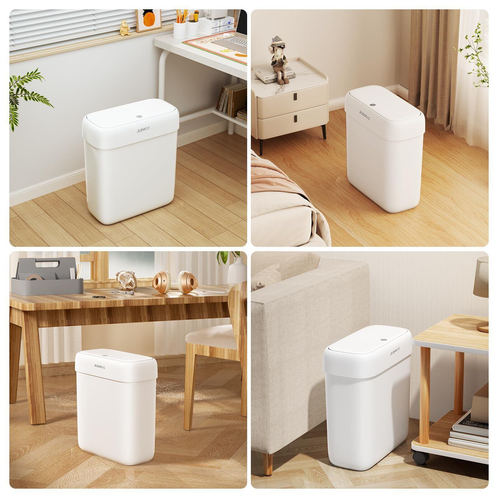 JUDRDO ゴミ箱 小型 9L ふた付き 消臭 ペット対策 スリム バスルーム 洗面所 トイレ 寝室 オフィス 用 ゴミ袋20枚付き 白