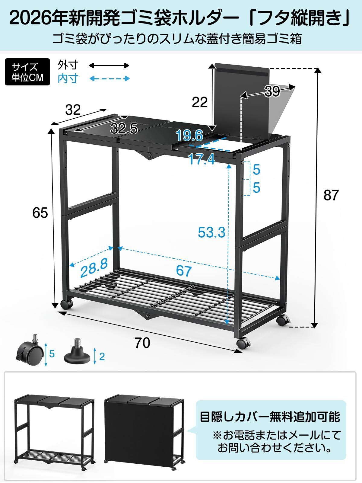 【安心な日本サポート・品質2年保証】お買上げより2年保証を提供しております。万が一、故障や不具合が生じた場合は無償で修理、又は当社の判断により交換させていただきます。※電話対応も可能です(土日祝休み)。※「TTWOゴミ袋ホルダー」は弊社デザイナーが独自のこだわりを持って完成させたオリジナル商品です。