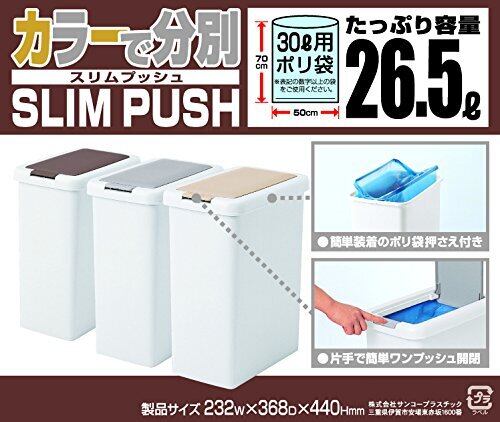サンコープラスチック 日本製 ゴミ箱 スリムプッシュ 26.5L ライトグレー