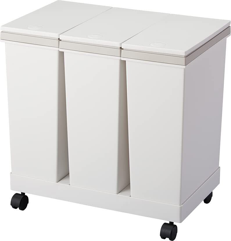 アスベル 3分別 ゴミ箱 60L 20L 3個セット キャスター付 フタ付 プッシュ式 ワゴン 日本製 横型 幅53.3×奥行34×高さ53cm ホワイト 白 ダストボックス 横型3分別ワゴンペール ASVEL