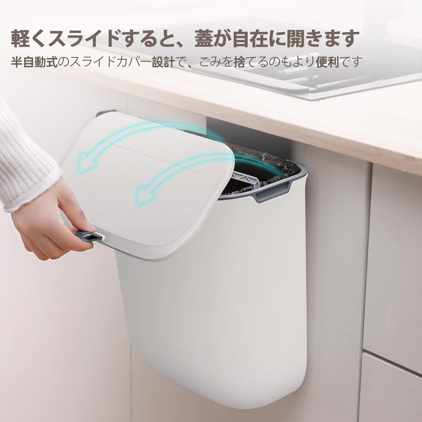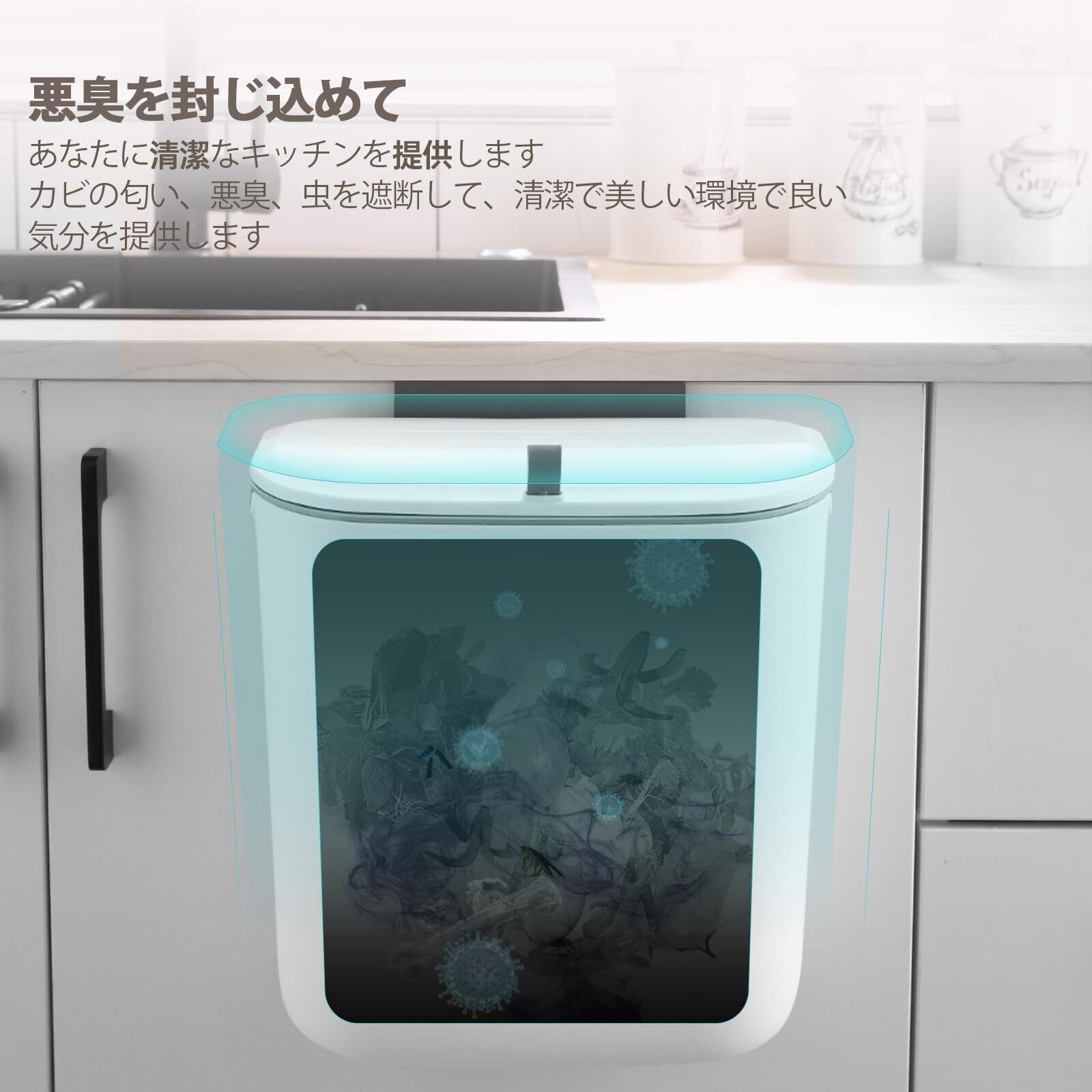 キッチン ゴミ箱 ひっかけ ぶら下げごみ箱 7L 壁掛けゴミ箱 キッチン 密閉 消臭 食器棚/バスルーム/ベッドルーム/オフィス/トイレ/車内用