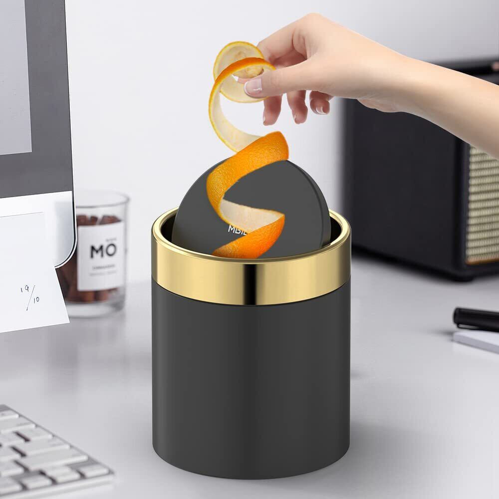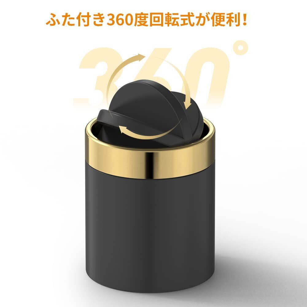 Mbillion 卓上ゴミ箱 小さい おしゃれ 蓋付き サニタリーボックス 生ゴミ ミニ丸形ごみ箱1.5L 360度回転式 ステンレス ダストボックス 寝室 オフィス 洗面所 インテリア ブラック (ゴミ袋を贈る)