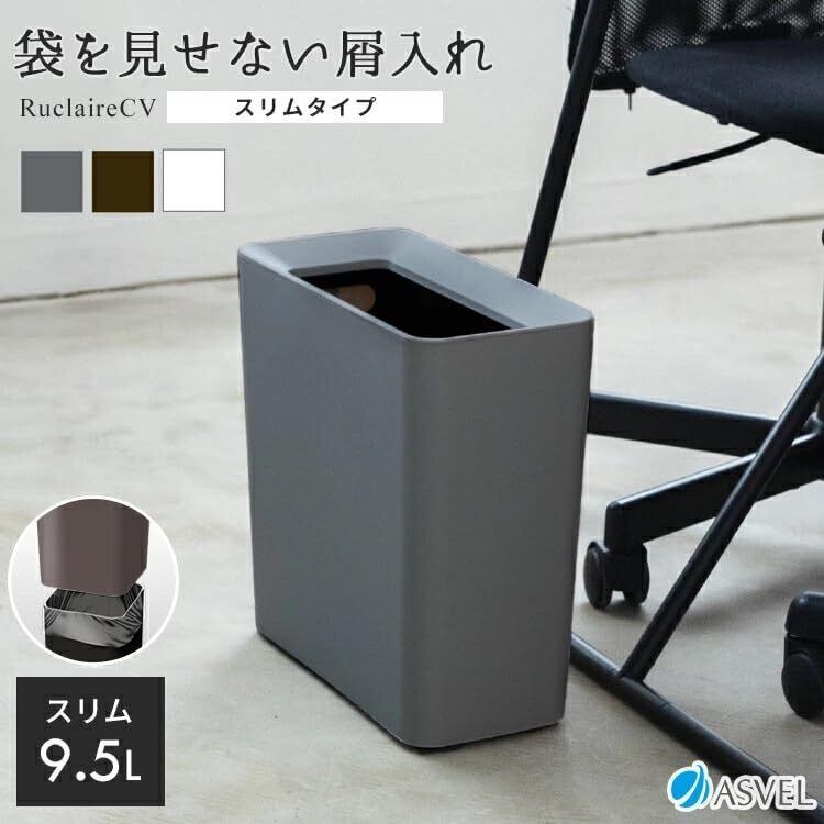 アスベル 袋が見えないゴミ箱 9.5L 長方形 角型 シンプル デザイン スリム 省スペース 幅15.5cm ゴミ袋隠し 二重構造 リビング 寝室 トイレ キッチン 白 ホワイト AZ・ルクレールCV スリム ASVEL