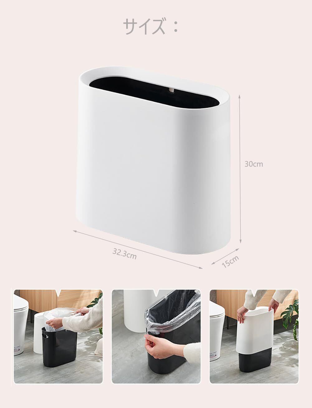 ゴミ箱 薄型 袋が見えない ごみ箱 うす型 ごみばこ 省スペース 2重構造 ゴミバコ (ホワイト)