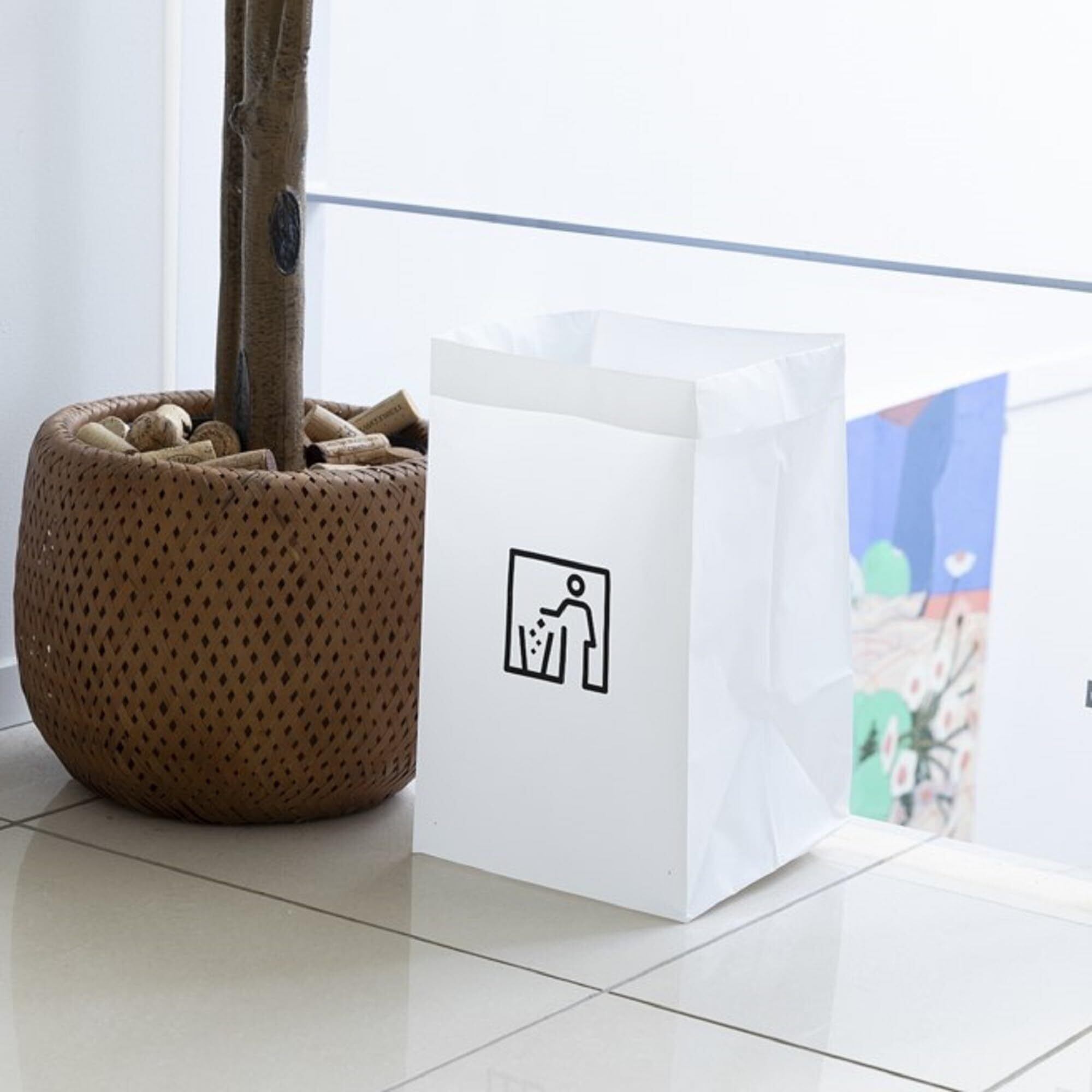 一目見ただけでゴミ箱とわかるピクトグラムをデザインに採用!使う場所を選ばないシンプルなホワイトカラー