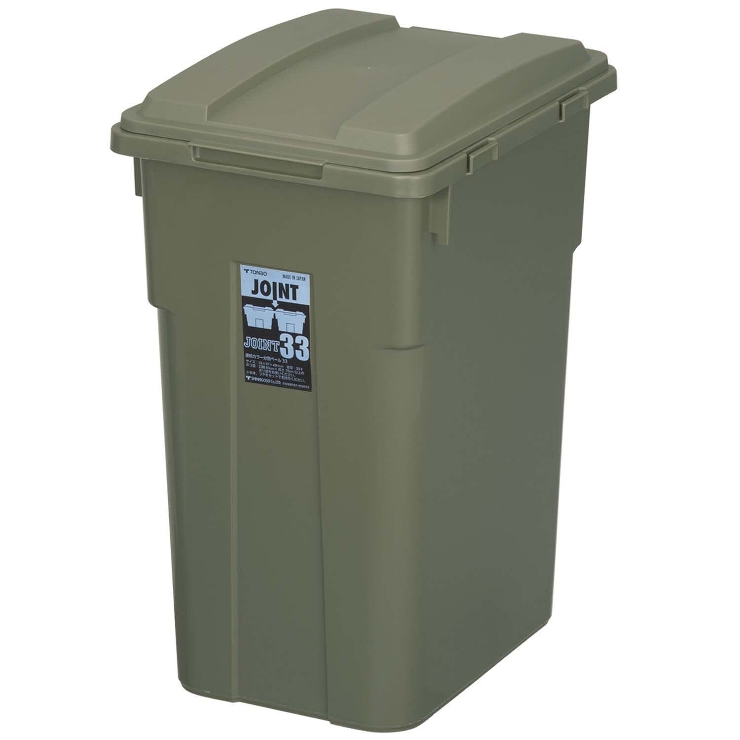TONBO 新輝合成 トンボ ゴミ箱 連結可能 33リットル カーキグリーン 幅28×奥行36.5×高さ49.5cm 蓋付き 分別 丈夫 屋外 ベランダ 大きい アウトドア 日本製