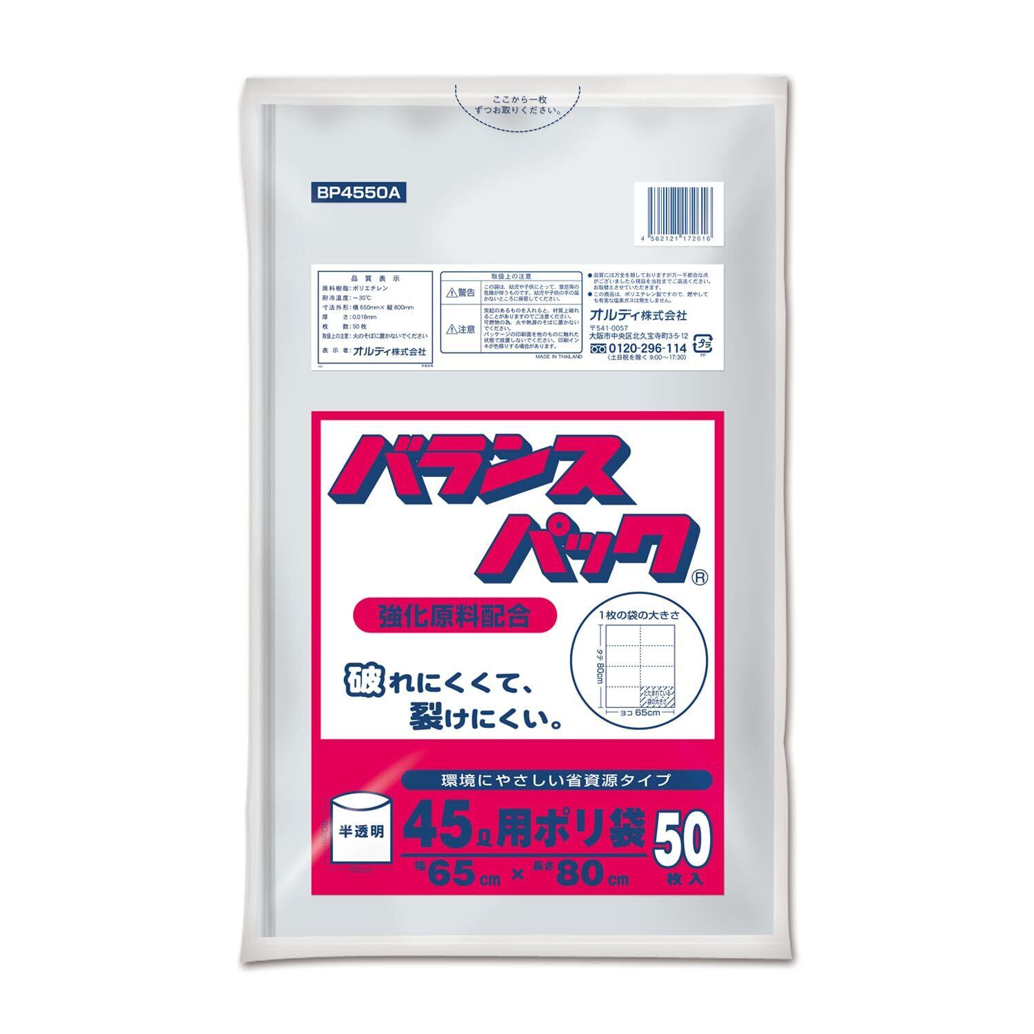 オルディ(Ordiy) ゴミ袋 半透明 45L 横65×長さ80cm 厚み0.018mm 破れにくくて 裂けにくい ポリ袋 BP4550A 50枚入