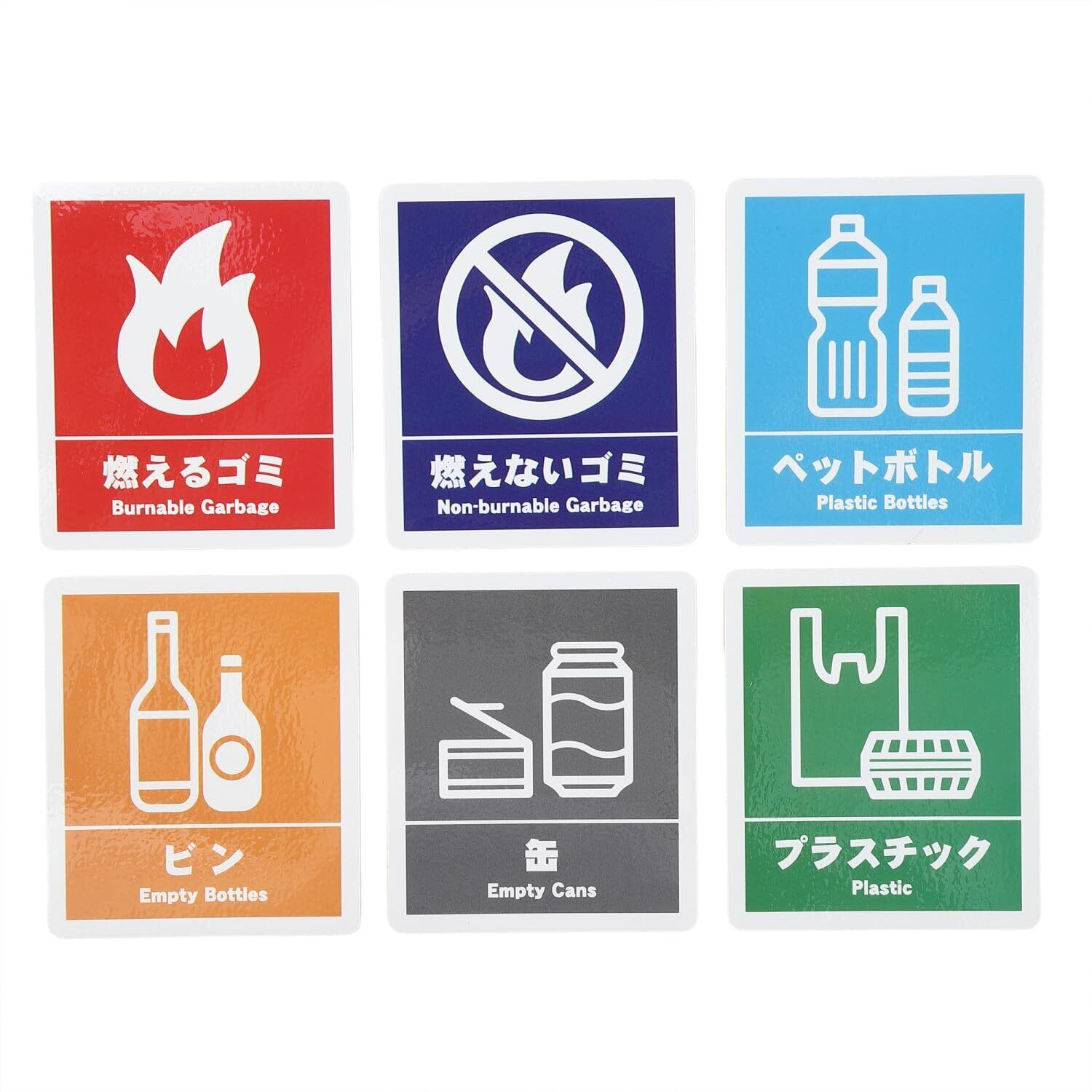 6種類セット:燃えるゴミ・燃えないゴミ・ペットボトル・ビン・缶・プラスチック