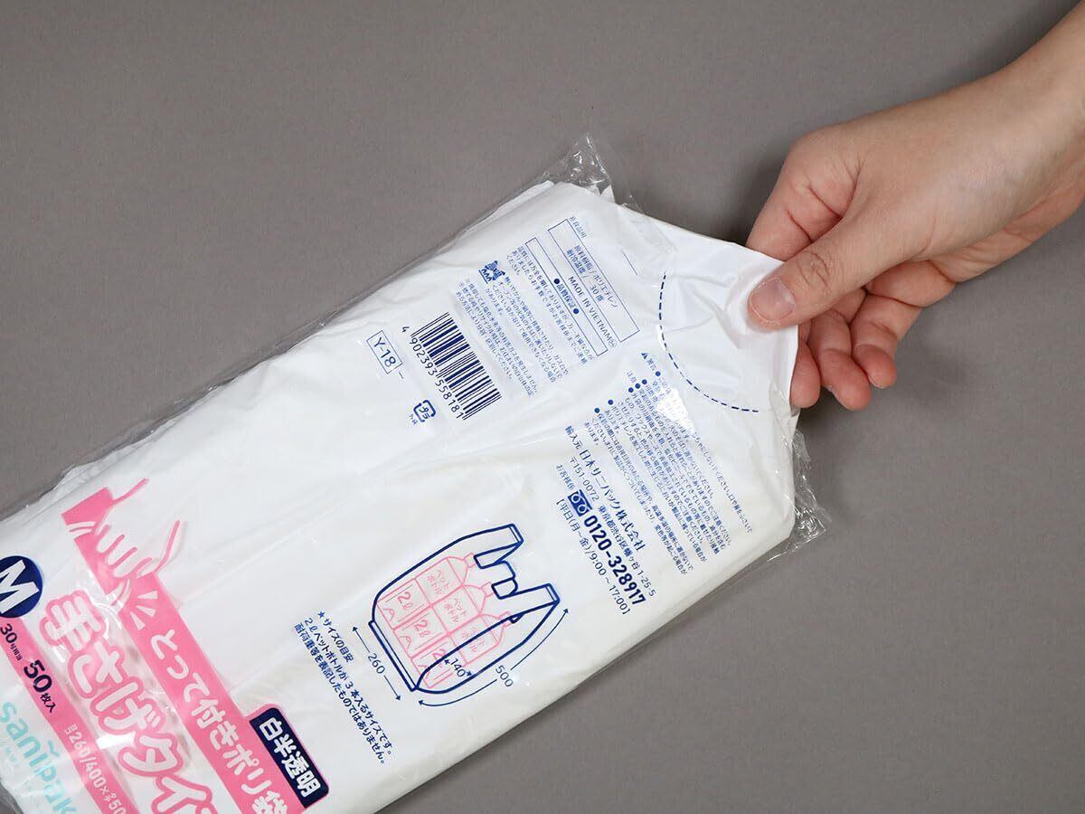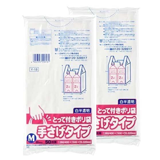 日本サニパック とって付き ポリ袋 ゴミ袋 白 半透明 M 100枚 (50枚入×2セット) レジ袋 Y-18