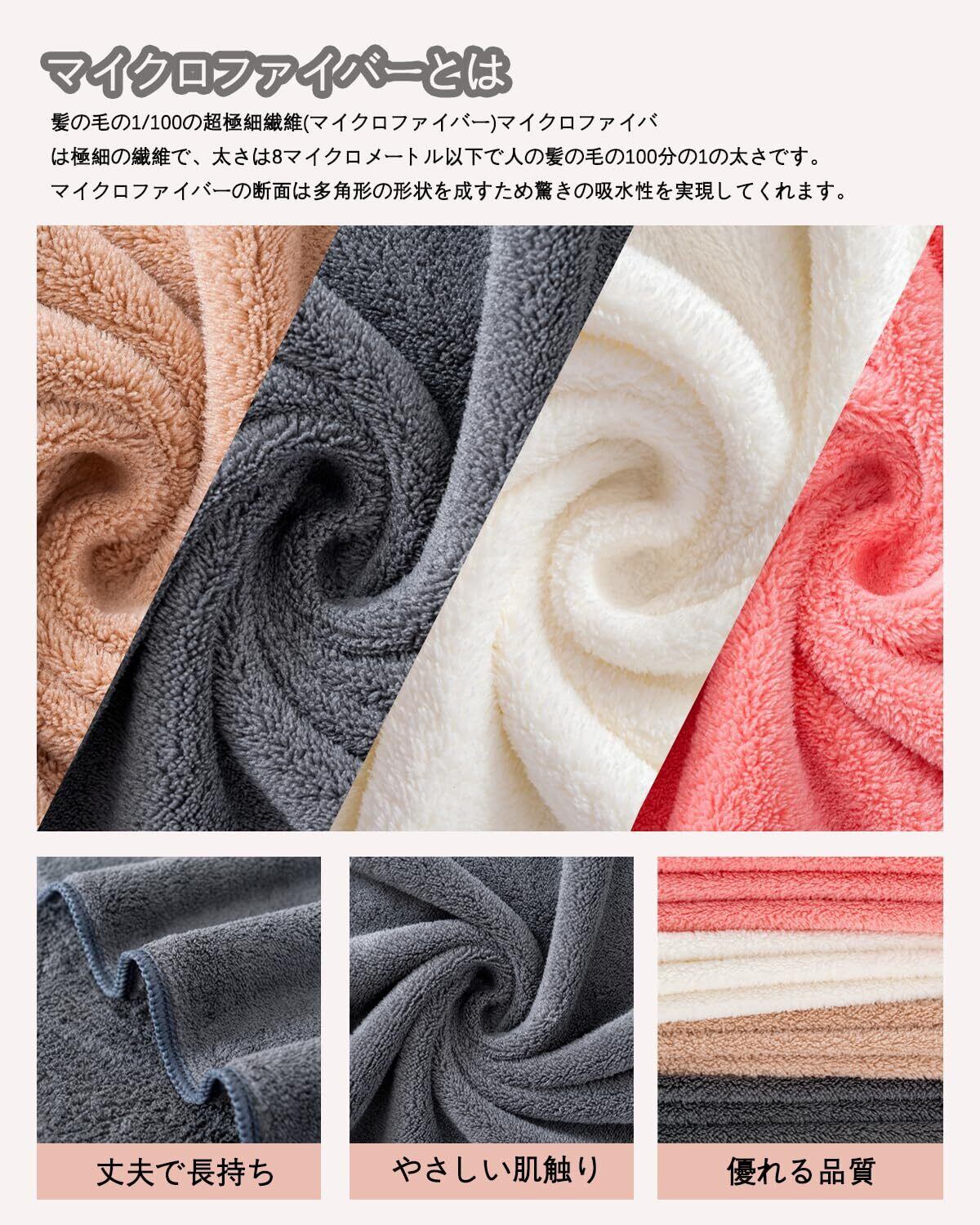 【抜群の吸水性と速乾性】綿の素材より吸水性が優れます。マイクロファイバー素材の表面は数えられない隙間があり、その隙間に大量の水分を素早い吸水できます。髪や肌にそっと当てるだけで水分が吸収される素材であり、また汚れも落としやすい特徴があります。隙間に取り込まれた空気が水分を拡散させるので、速乾性のポイントで、バスタオルの雑菌を抑え、健康を保つことができます。