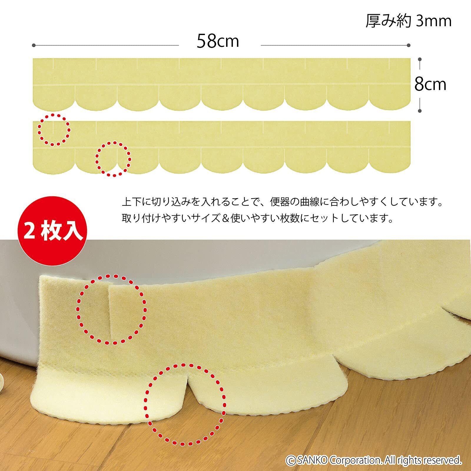 サンコー トイレ 便器すきまテープ ずれない 貼るだけ 汚れ防止 おくだけ吸着 イエロー 2枚 8×長さ58cm OK-95
