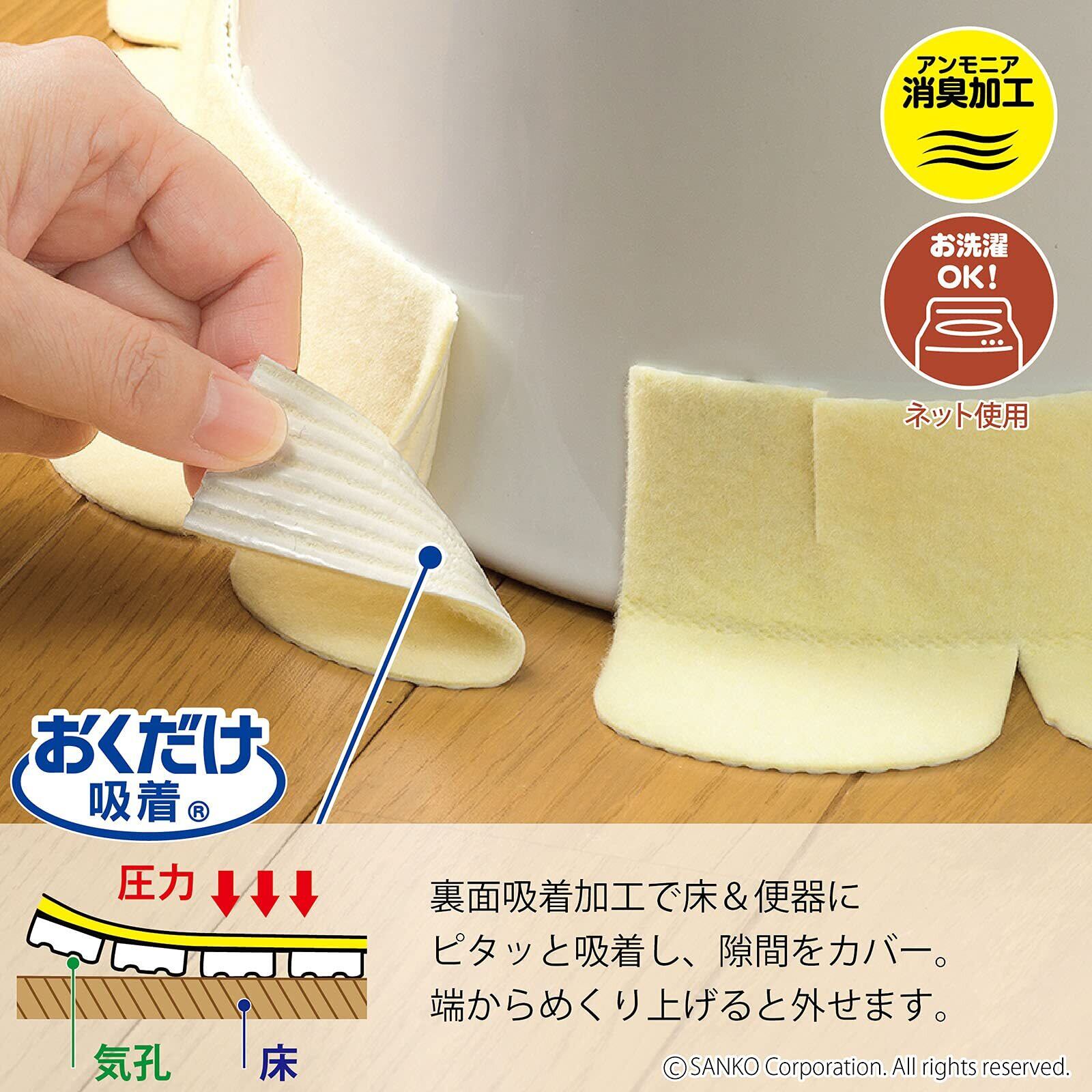 便器と床のすきまの汚れを防ぐテープ2枚入りです。便器から垂れてきたおしっこを吸収、またホコリや汚れも防止します。