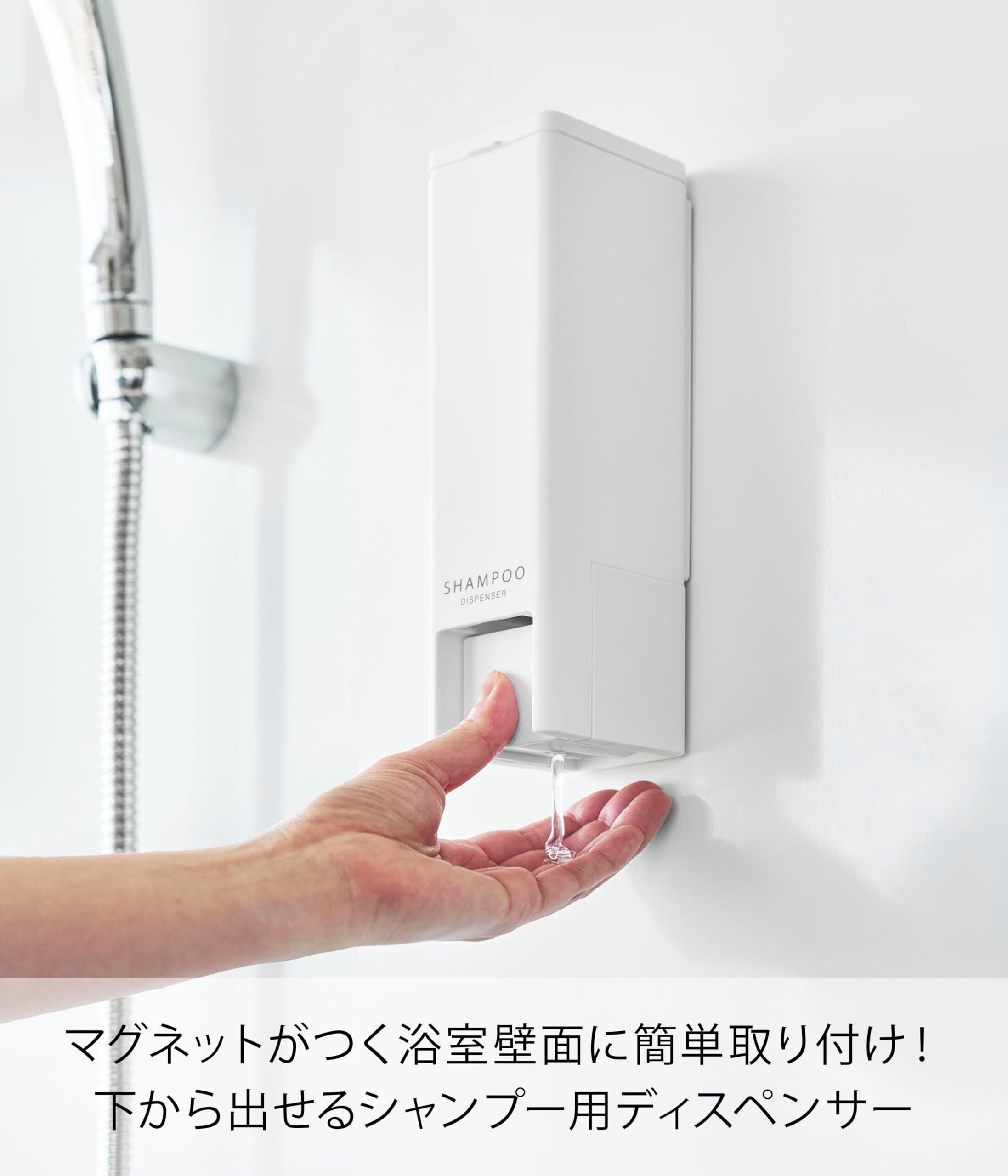 山崎実業(Yamazaki) 下から出る マグネットディスペンサー シャンプー ホワイト W6×D7.5×H21.3cm タワー tower 片手でプッシュ 浮かせる収納 詰め替えボトル 10290