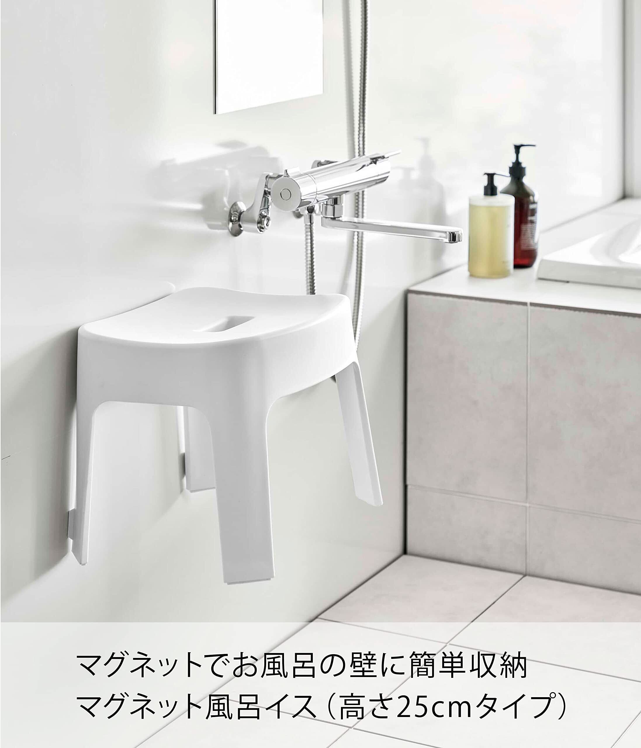 山崎実業(Yamazaki) マグネット 風呂イス SH25 ホワイト 約W33×D26.5×H25.5cm(座面:約H25cm) タワー tower 通気性よく乾きやすい バスチェア 6925