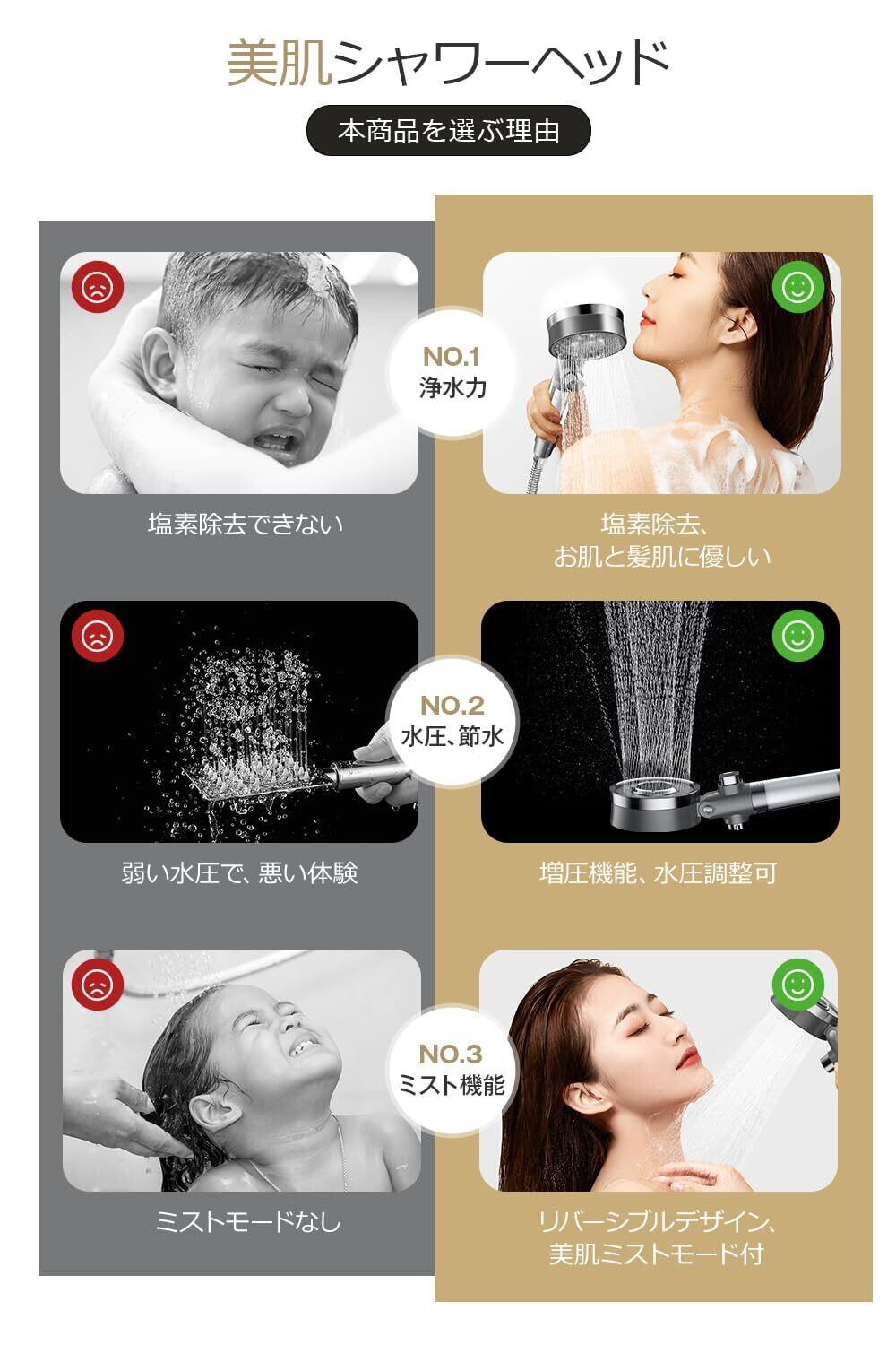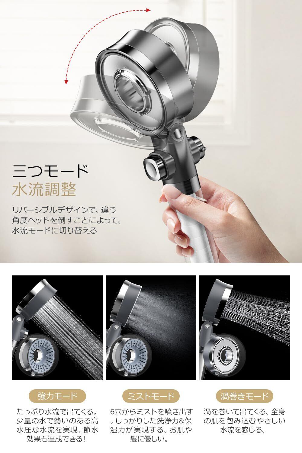 シャワーヘッド マイクロナノバブル シャワーヘッド 高水圧 手元止水 80%節水 3段階モード 軽量 保温効果 しっとり保湿 水漏れ防止 ミスト 毛穴汚れ除去 4種類アダプター付属 分解可能でお手入れ簡単 掃除便利 塩素除去フィルター3本付き 工具不要・簡単取付 G1/2国際汎用規格ジョイント